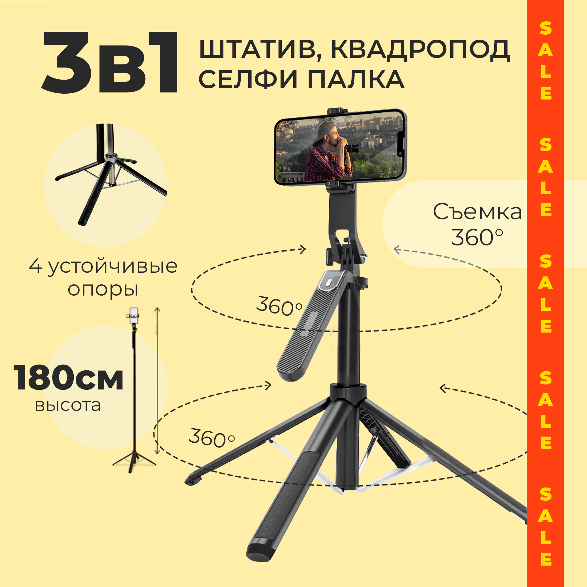 Штатив для телефона,180 см, селфи палка, квадропод для смартфона, штатив для фотоаппарата, напольный, настольный, черный