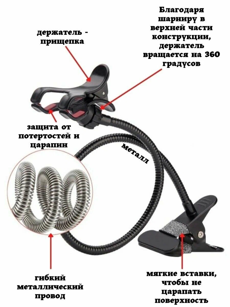 Универсальный гибкий держатель для телефона PH-1 ISA черный интересное:
