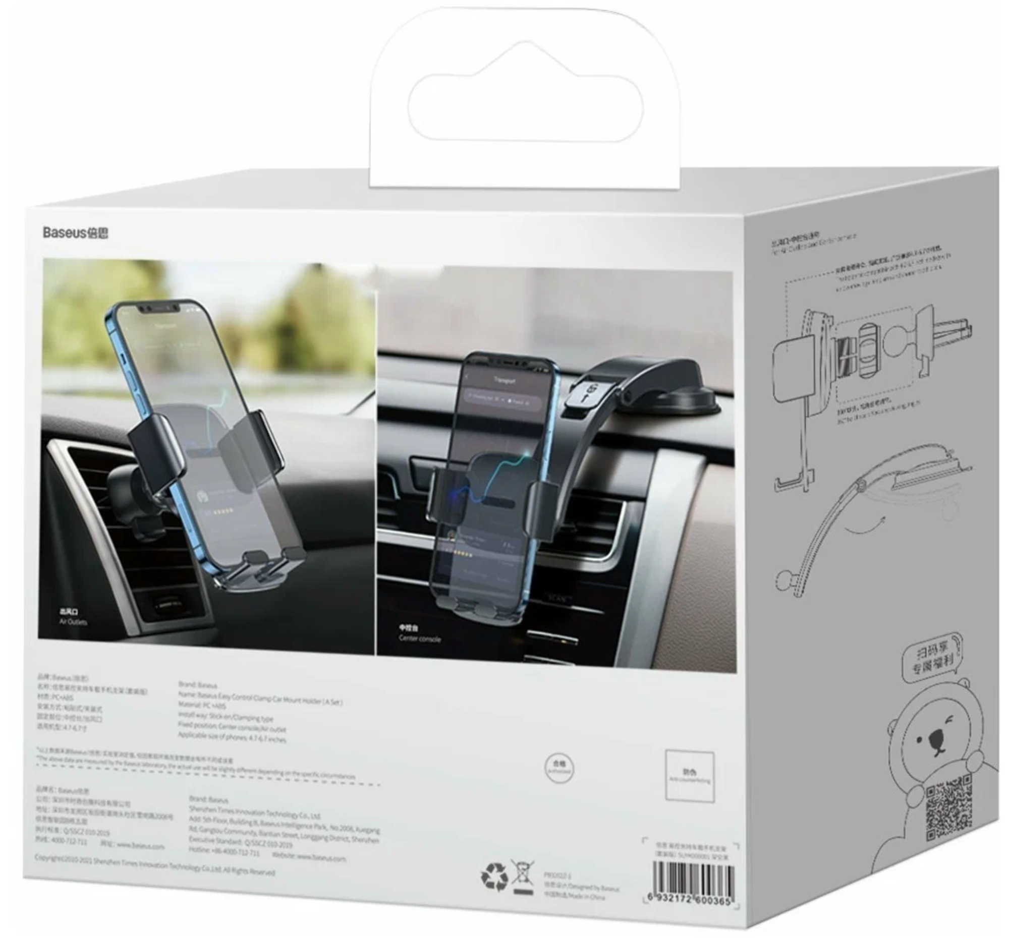 СохранитьАвтомобильный держатель Baseus Easy Control Clamp Car Mount Holder (A Set) For Air Outlets and Center Console Black (SUYK000001) интересное: