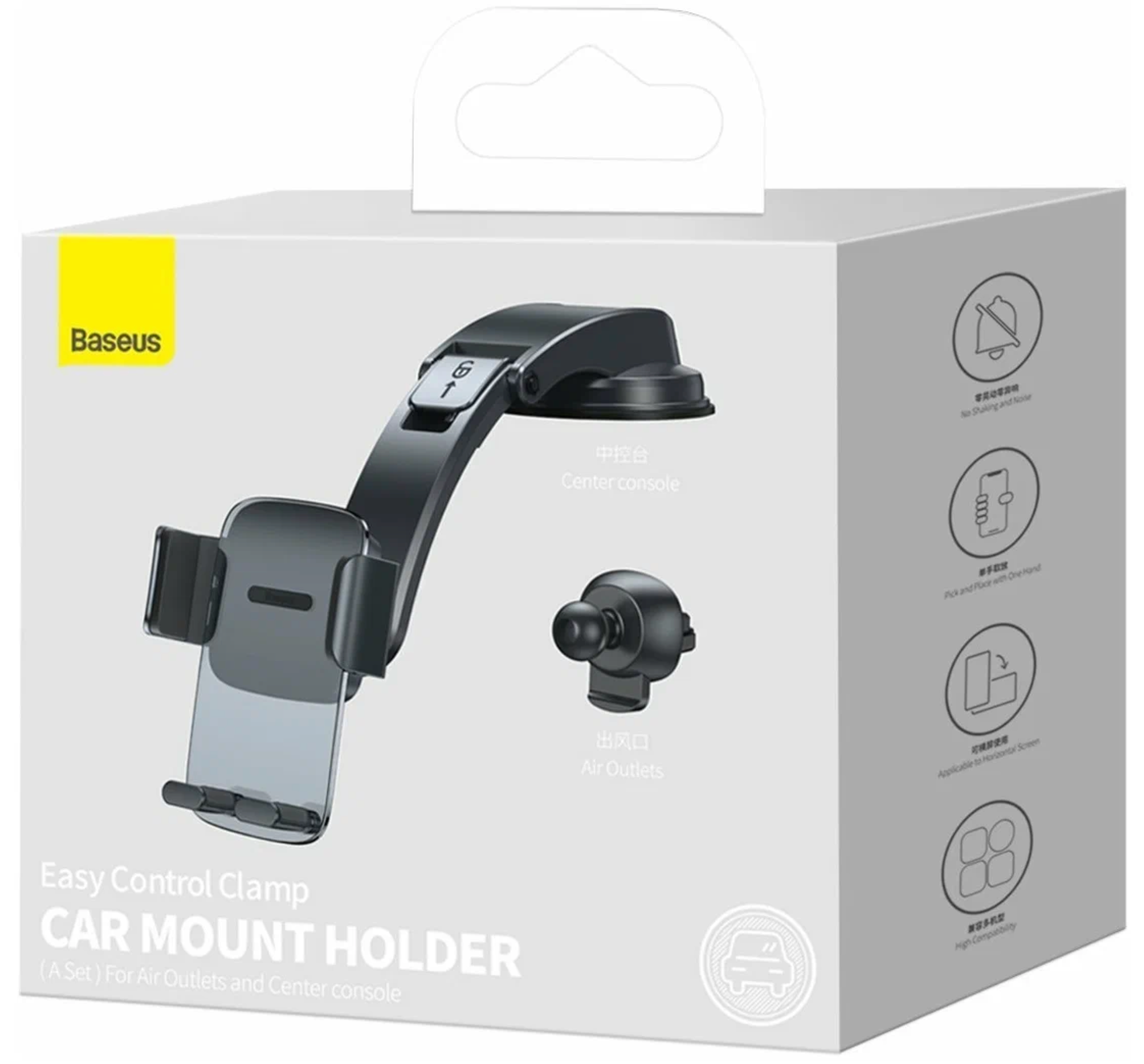 Купить Автомобильный держатель Baseus Easy Control Clamp Car Mount Holder (A Set) For Air Outlets and Center Console Black (SUYK000001)