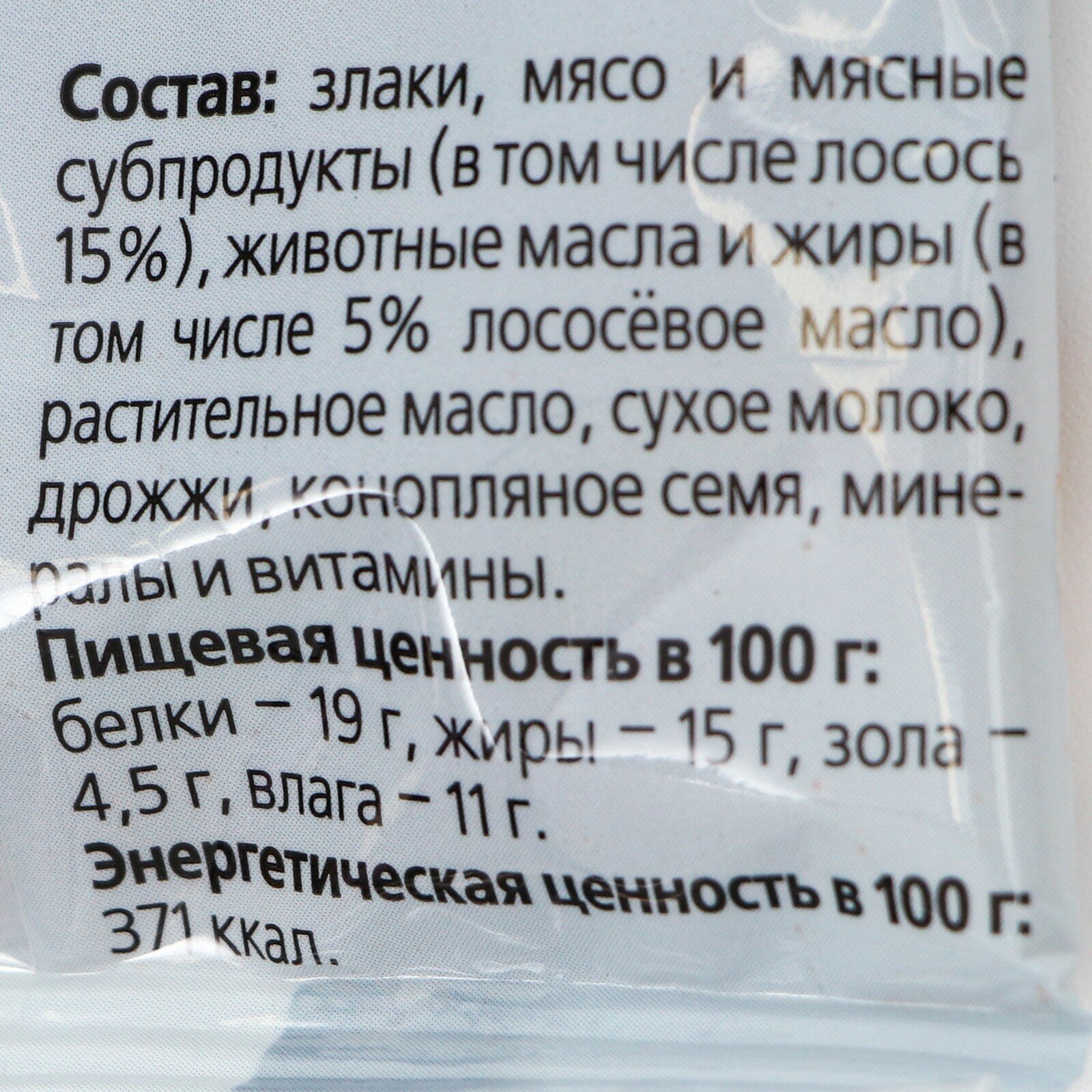 | Состав | злаки, мясо и мясные субпродукты, животные масла и жиры, растительное масло, сухое молоко, дрожжи, минералы и витамины. |