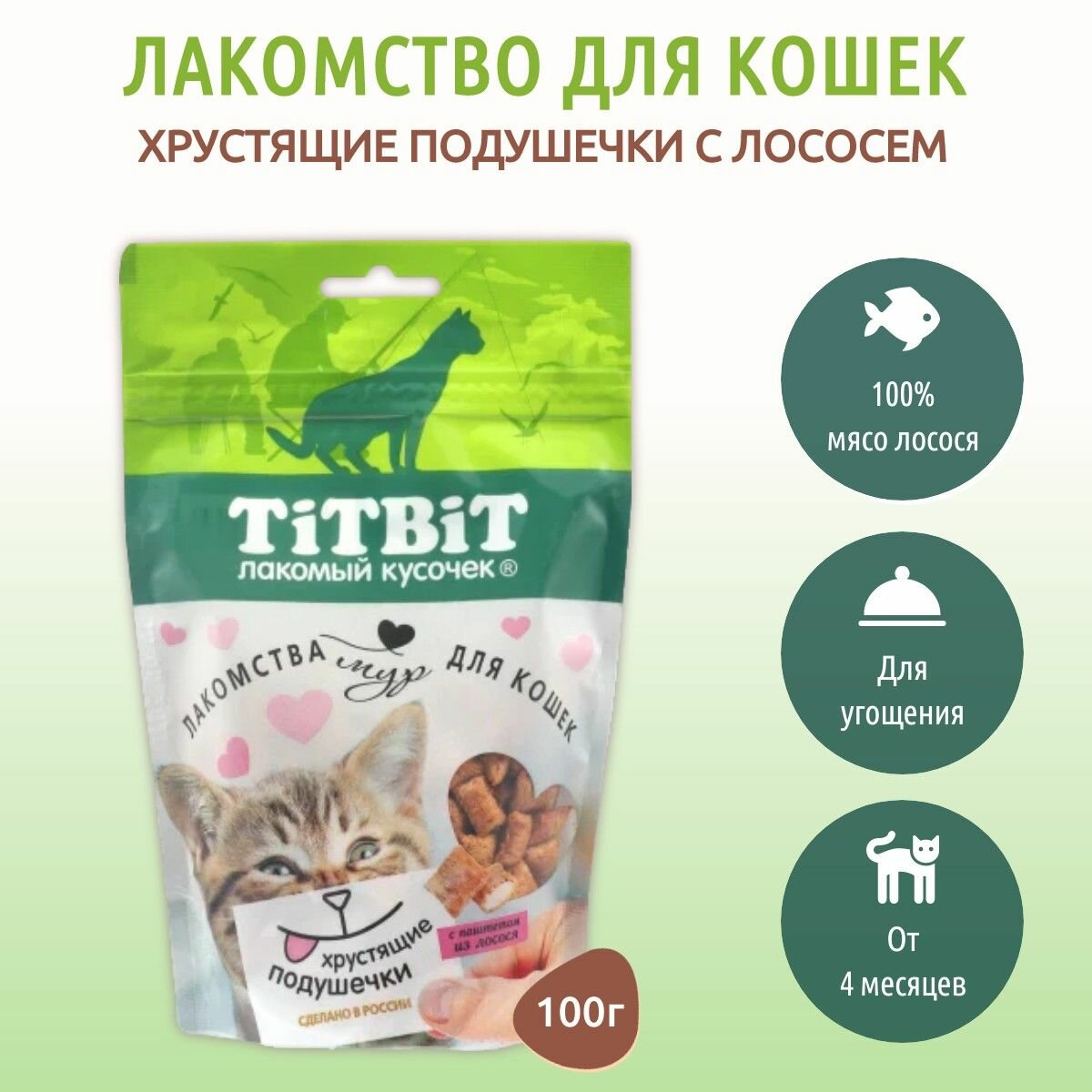 TitBit 60г Хрустящие подушечки для кошек с паштетом из лосося