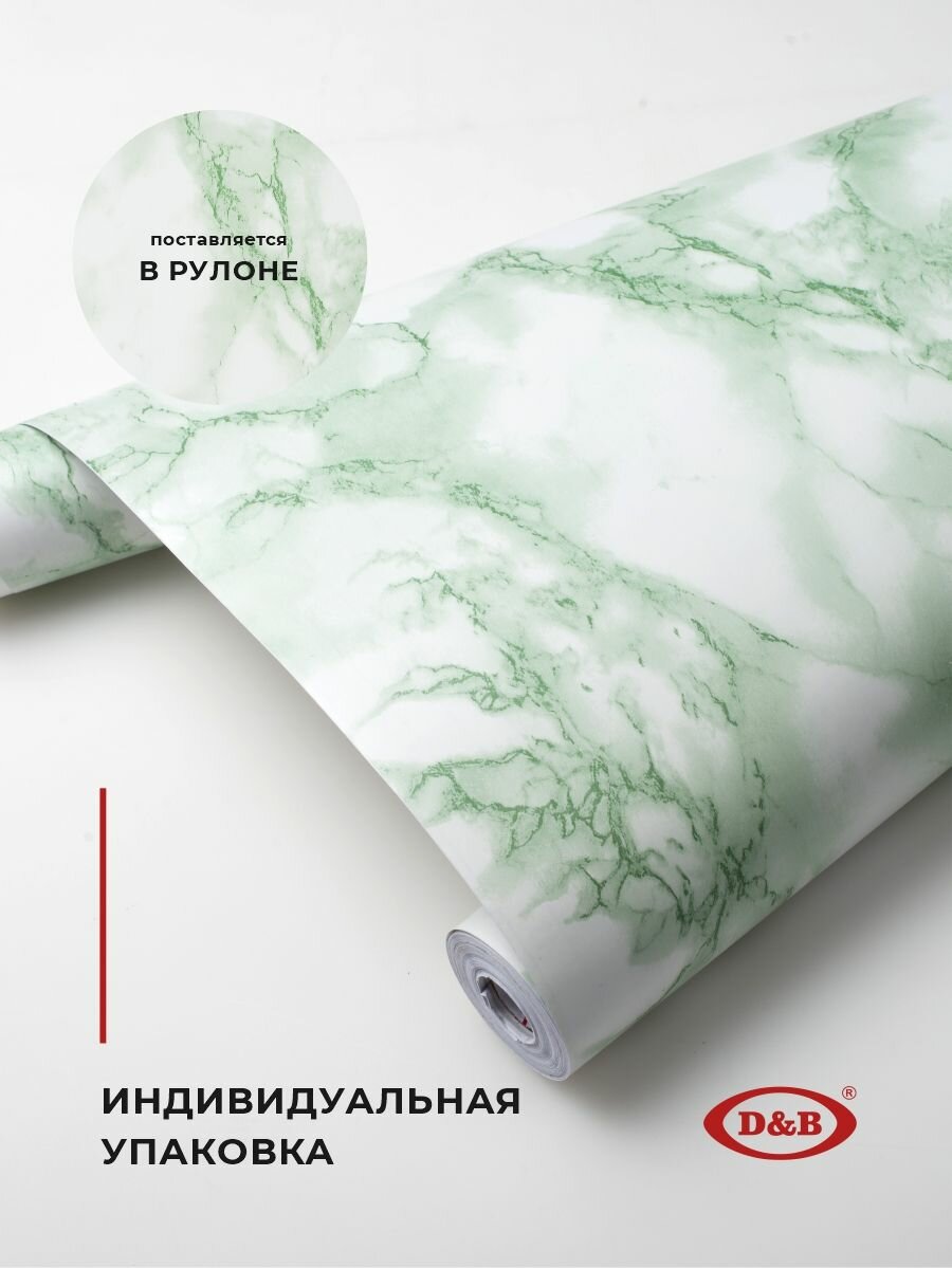 Пленка самоклеящаяся для мебели водостойкая моющаяся Мрамор Изумруд, D&B, 0,45*8м