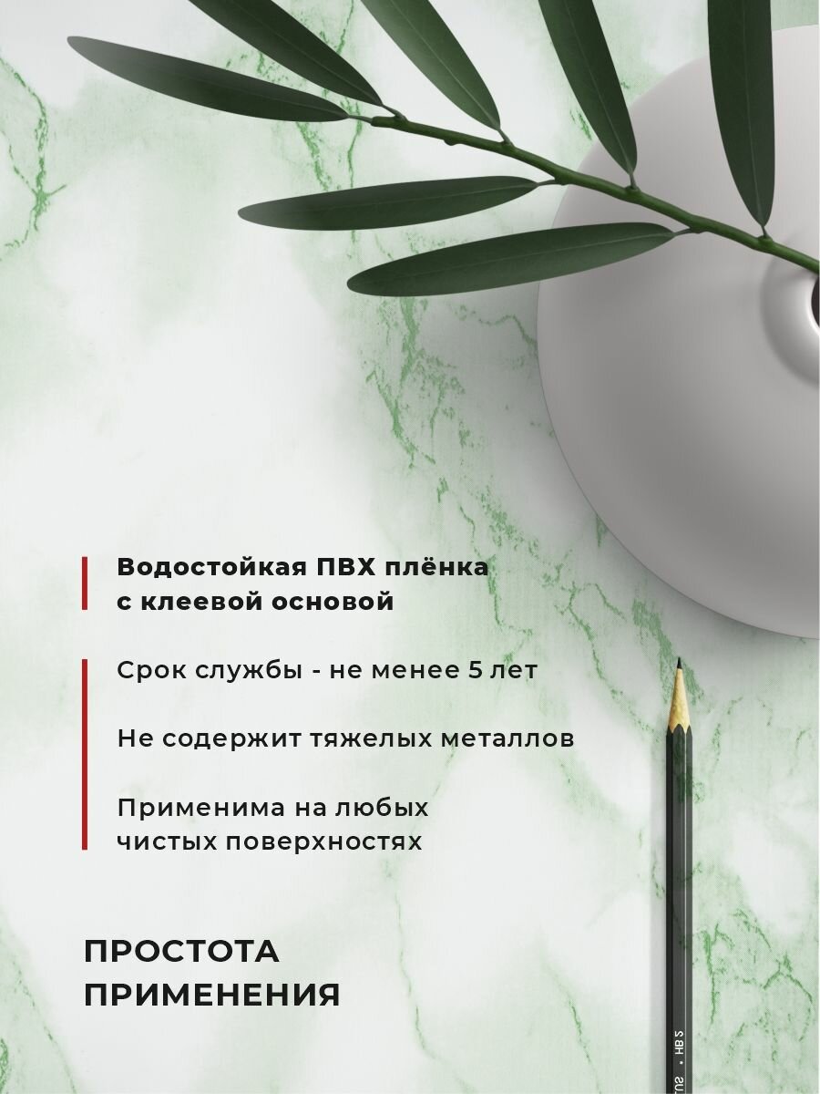 Пленка самоклеящаяся для мебели водостойкая моющаяся Мрамор Зеленый D&B 0,45х2