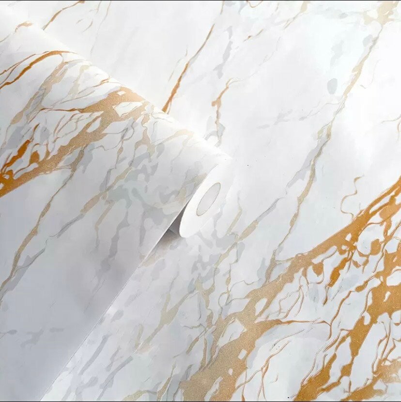Купить Самоклеящаяся пленка для мебели, для кухни и ванной ПВХ, ширина 60 см, рулон 3 м, бело-золотая