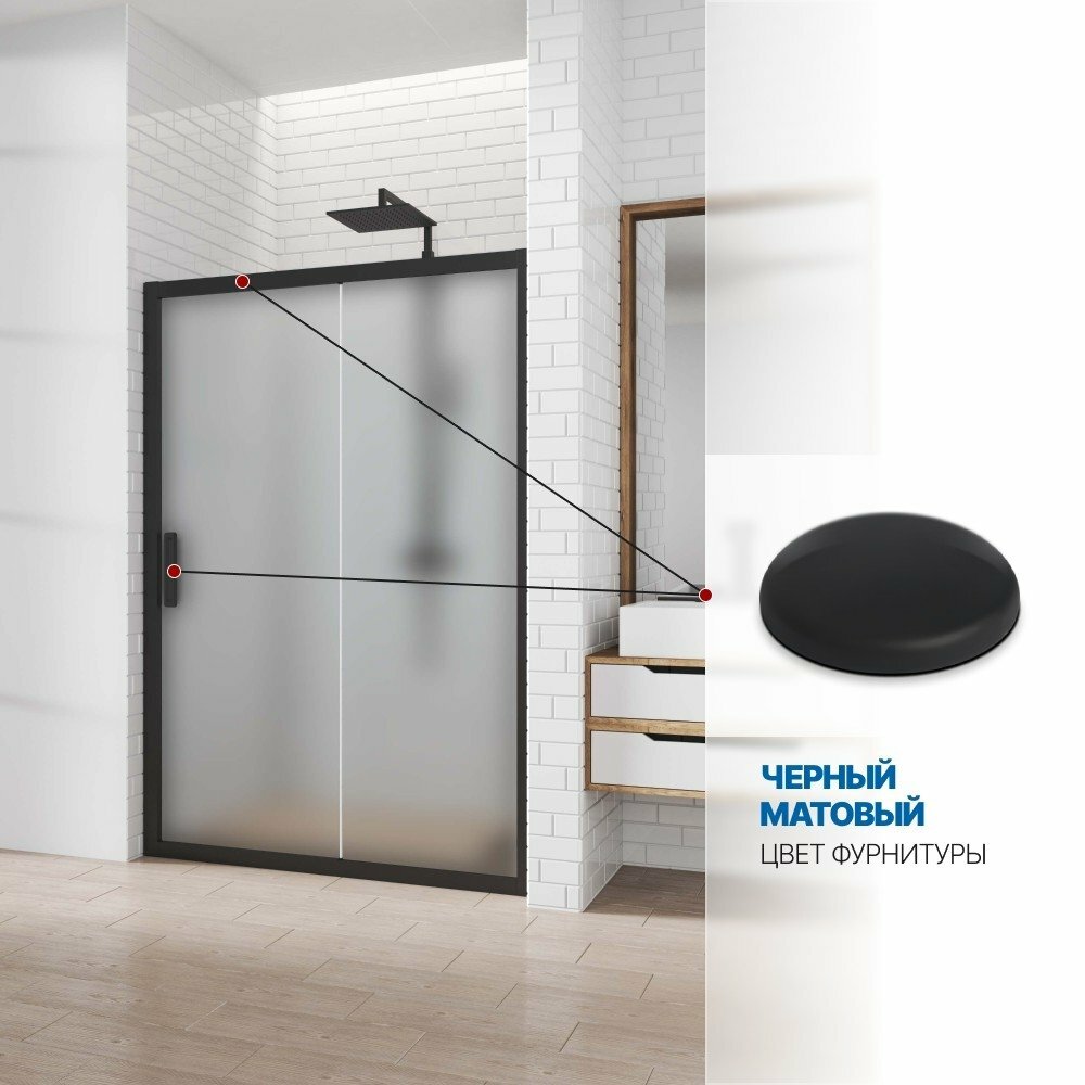 Дверь в душевую нишу GWMPKB019D2 150x200 см, цвет фурнитуры черный матовый, цвет стекла матовый, стекло закаленное 6 мм / 6 мм