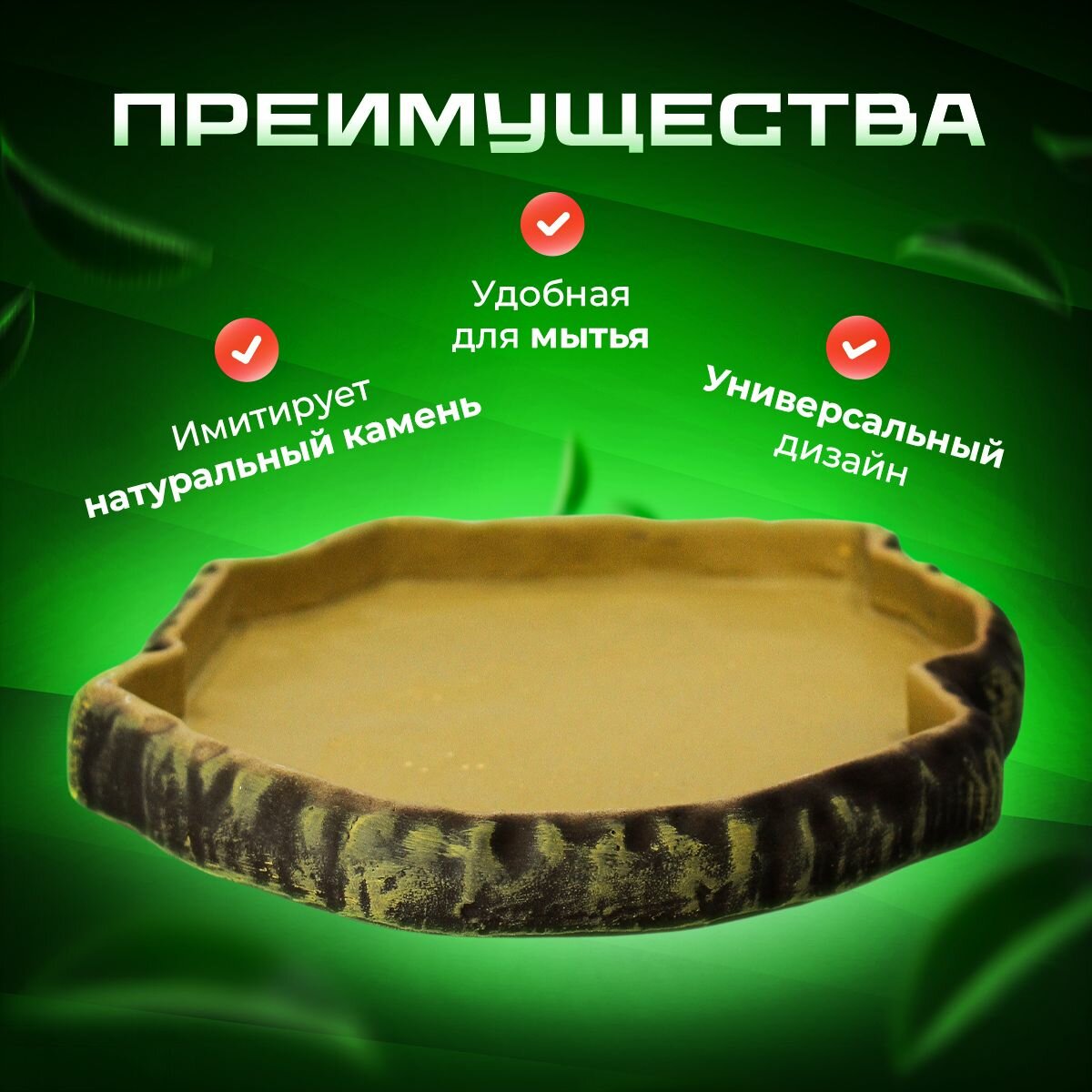 Поилка для рептилий кормушка поилка для террариума, черепах, змей Simple Zoo, 180х150х25 мм