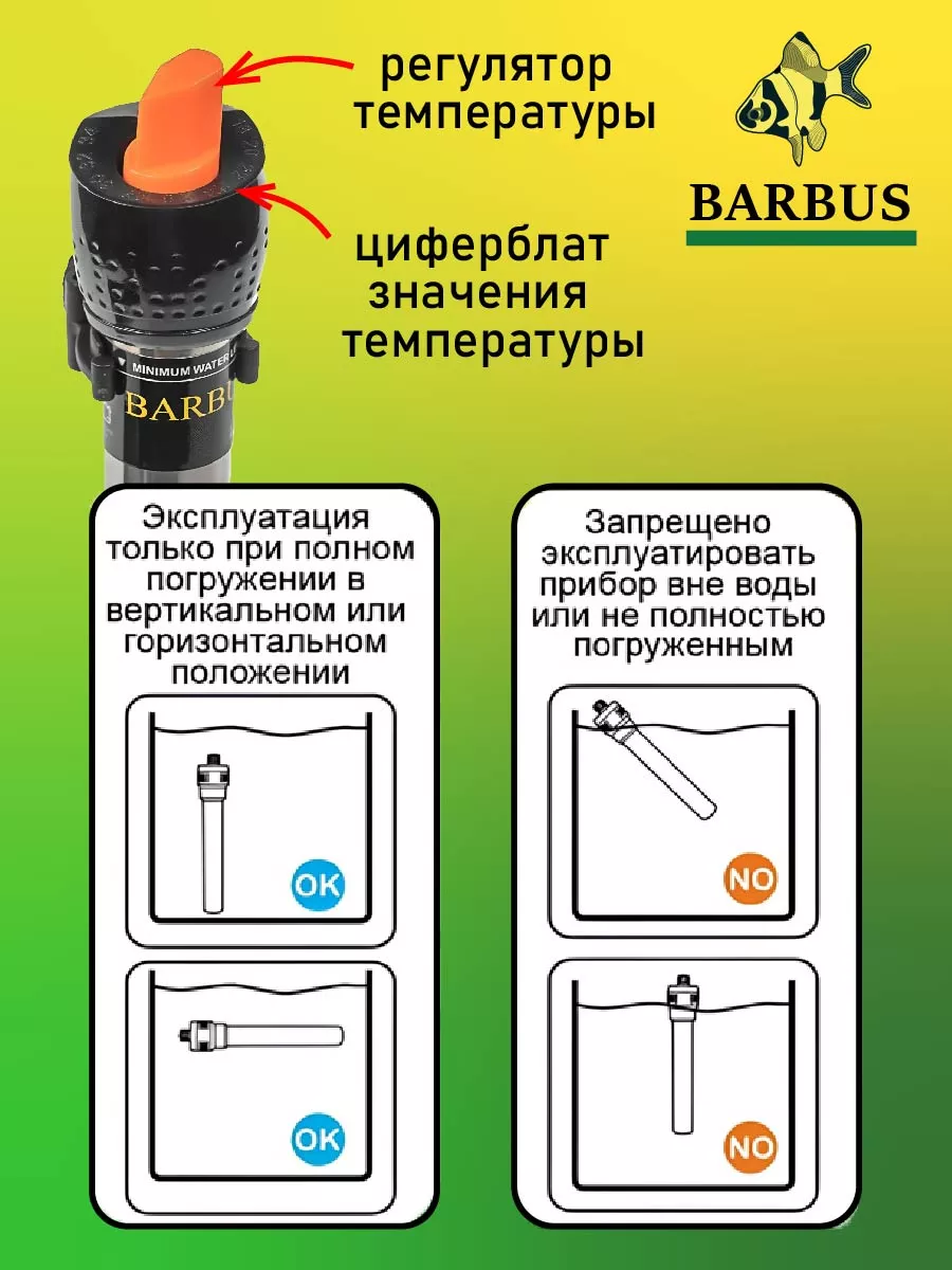 Нагреватель-терморегулятор нового поколения металлический BARBUS (500 Вт)