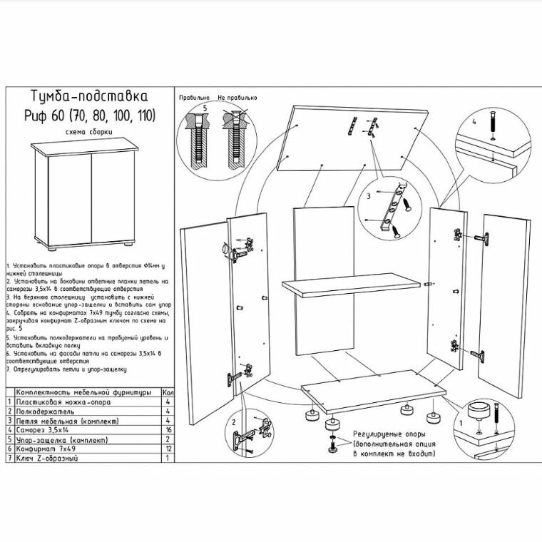 | Дополнительная информация | Тумба серийно комплектуется пластиковыми ножками, которые берегут полы от царапин и равномерно распределяют нагрузку. |