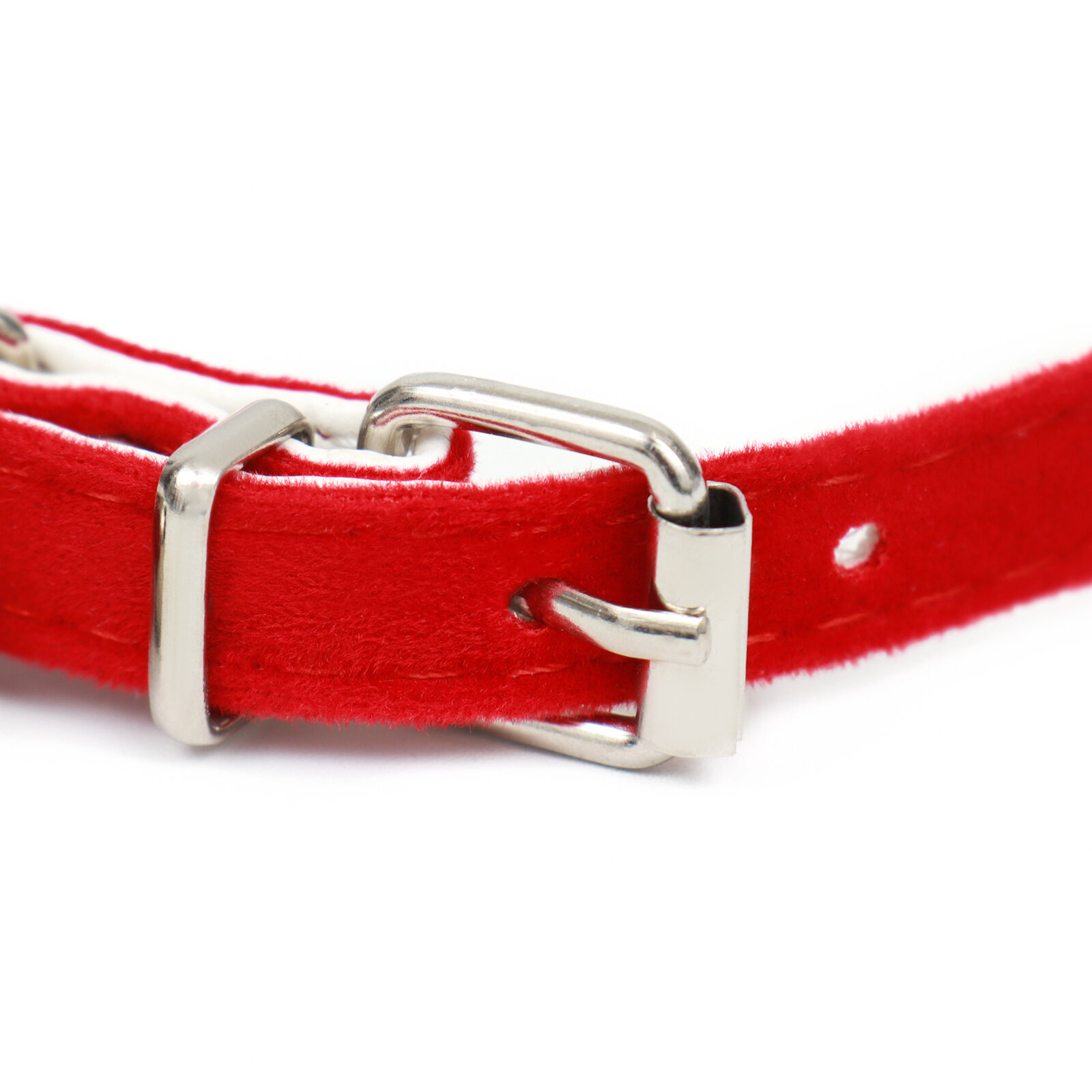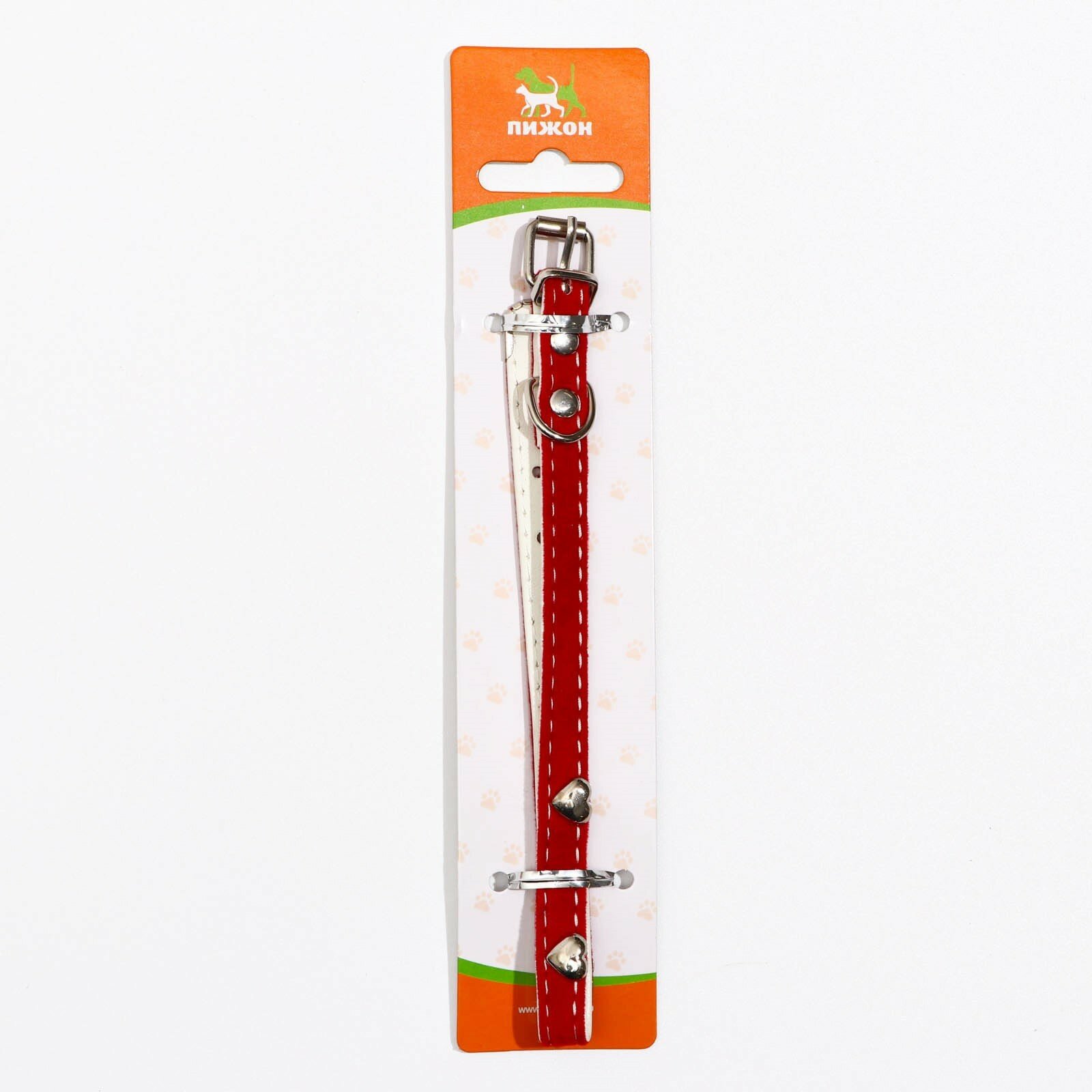 Ошейник бархатистый с сердечками, 32 х 1 см, ОШ 23-29, текстиль и кожзам, красный