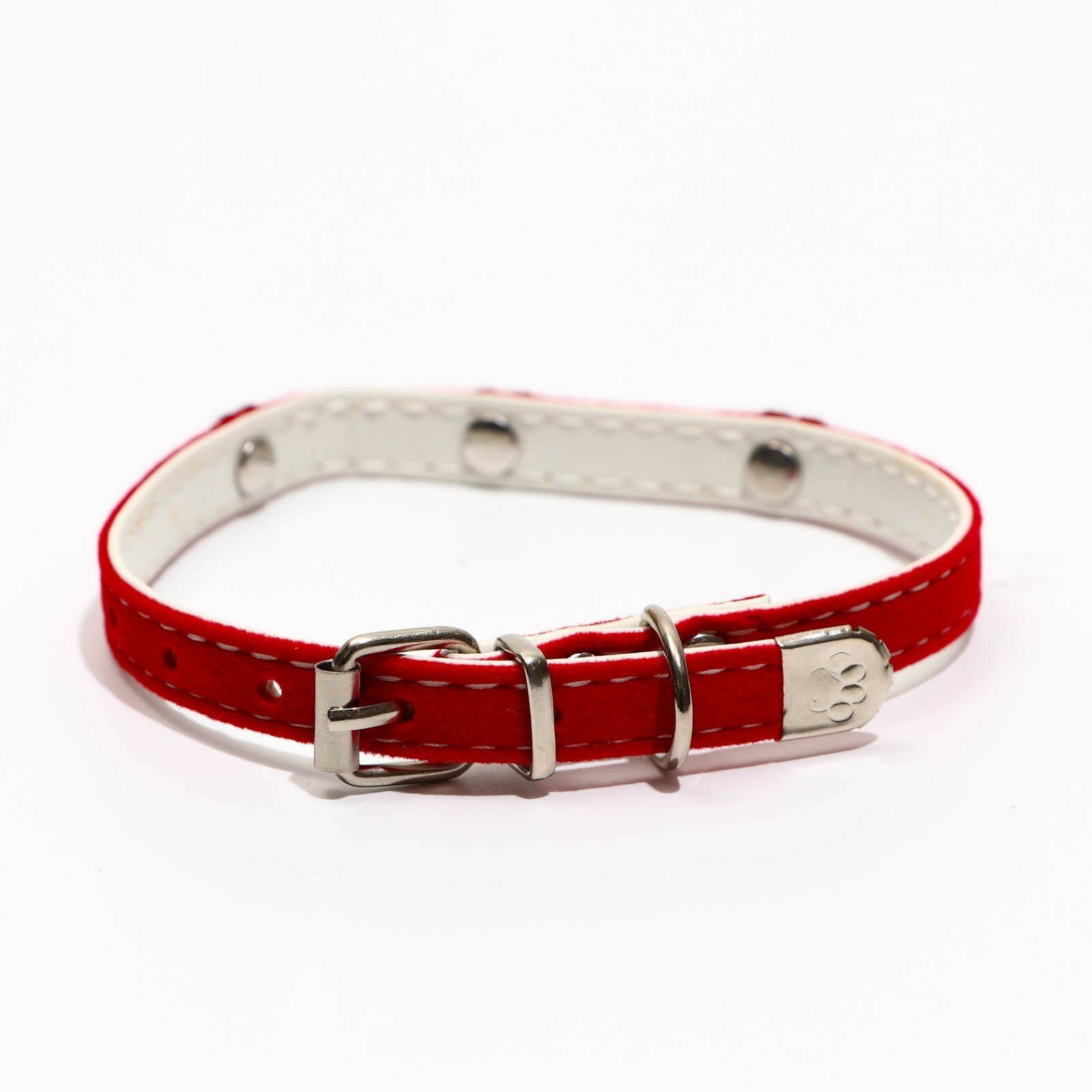 Купить Ошейник бархатистый с сердечками, 32,5 х 1 см, текстиль и кожзам, красный
