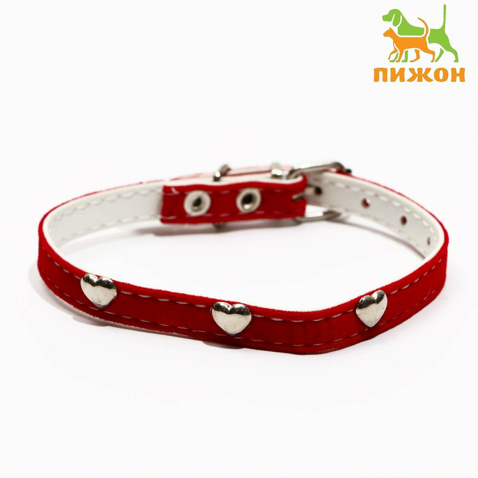 Ошейник бархатистый с сердечками, 32 х 1 см, ОШ 23-29, текстиль и кожзам, красный 7364458