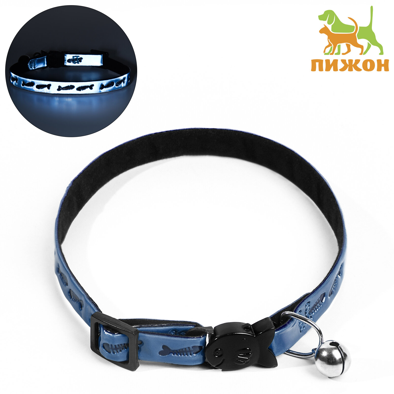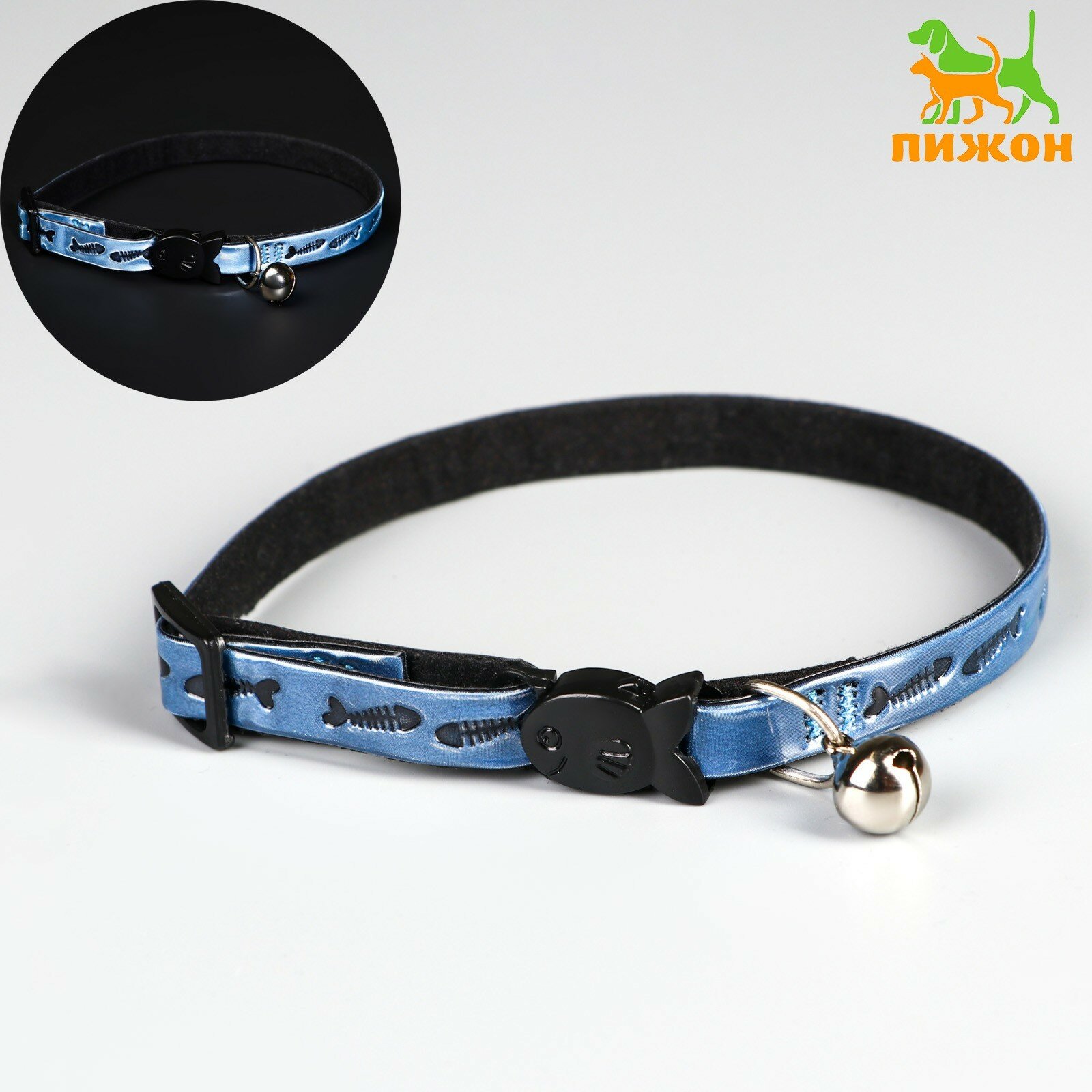 Купить Ошейник для животных, кошачий, со светоотражающим покрытием Рыбки, 30 х 1 см, голубой, 1 шт.