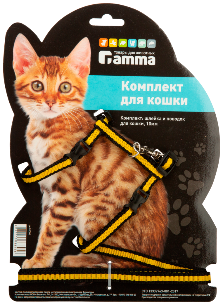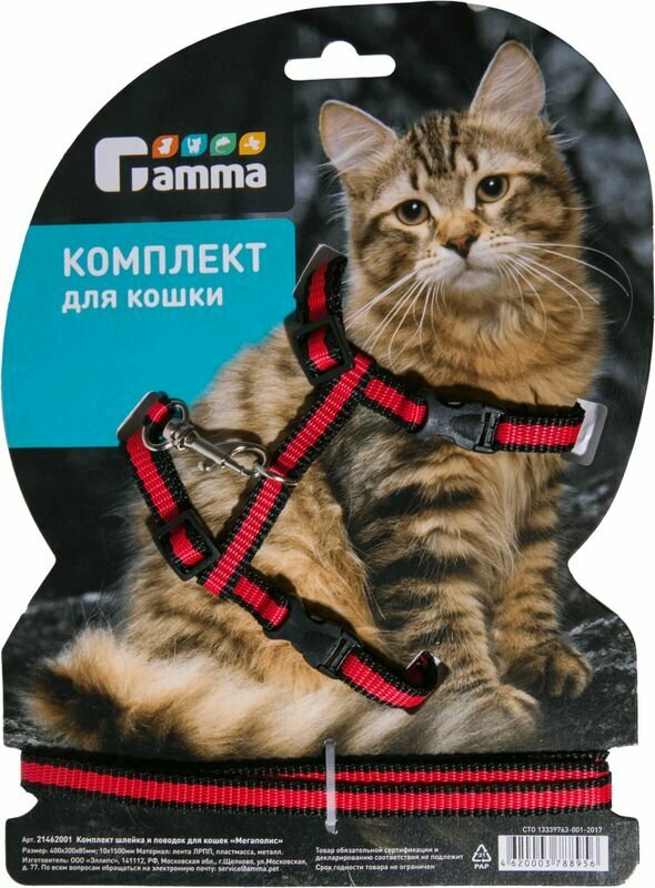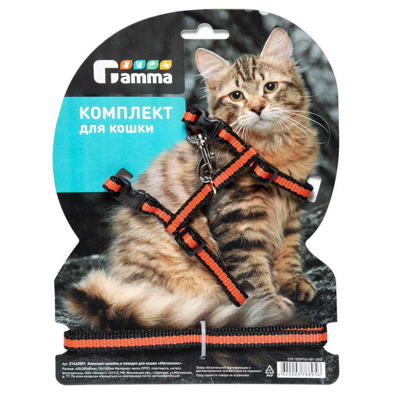 Гамма 21462001 Комплект шлейка и поводок д/кошек "Мегаполис", 400*300*85мм; 10*1500мм . интересное: