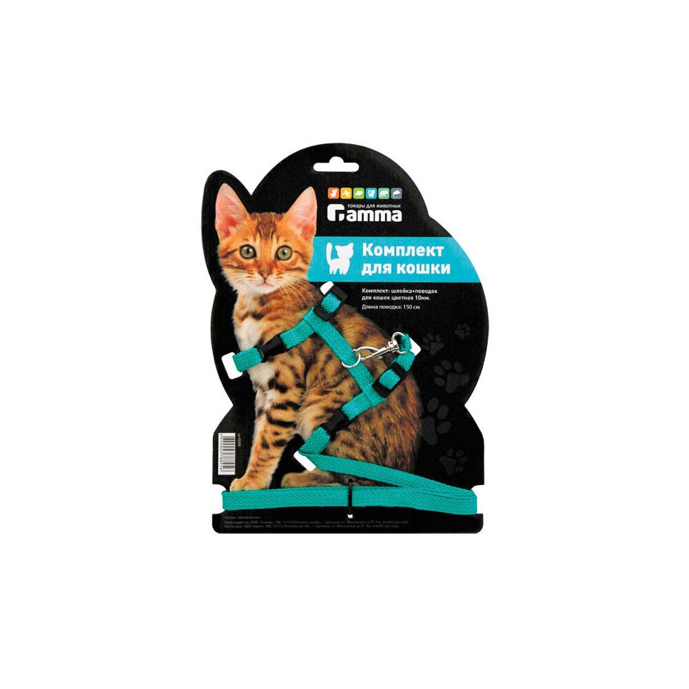 Комплект шлейка и поводок для кошек из капрона, 400*300*85мм; 10*1500мм (блистер) Gamma