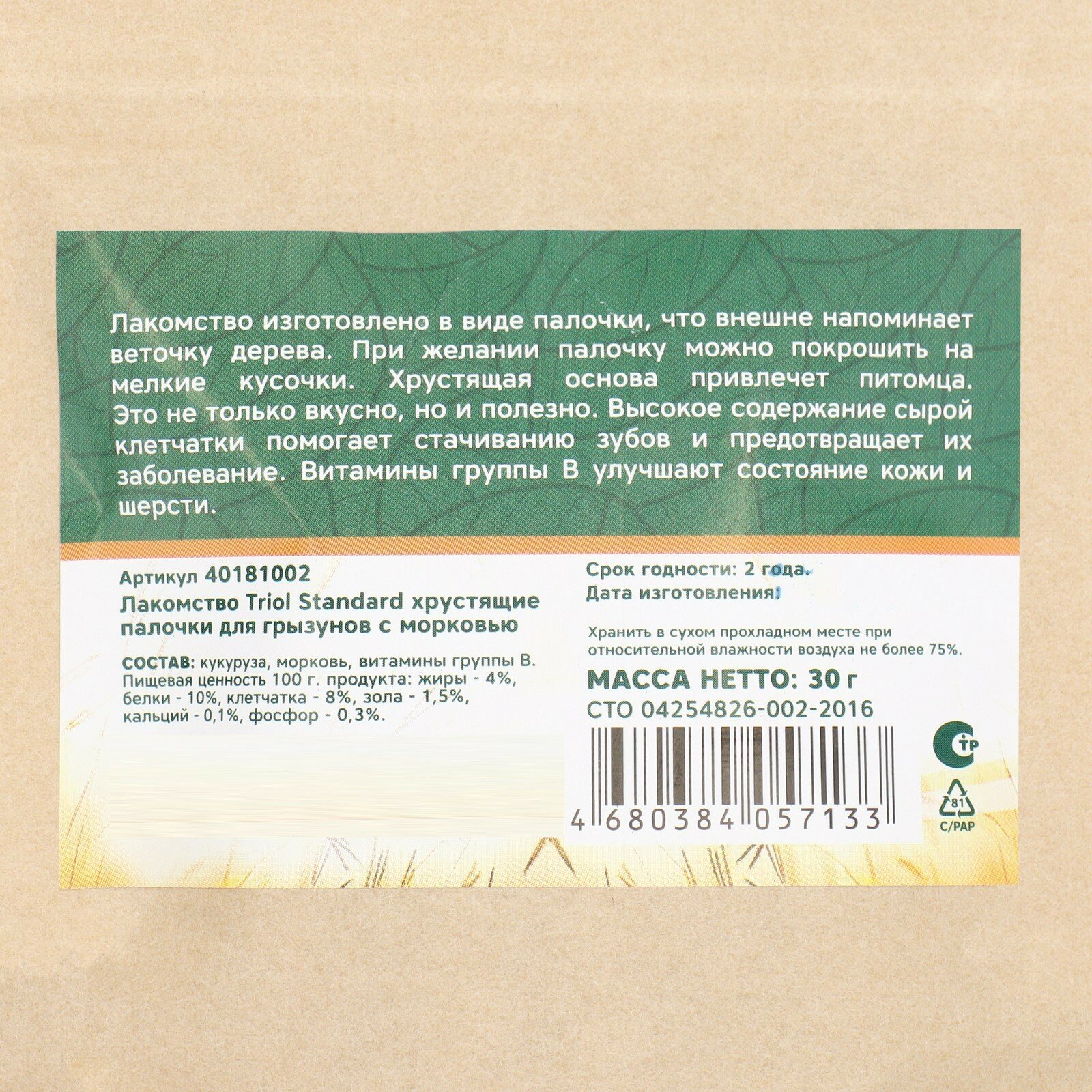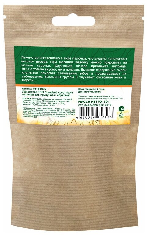 TRIOL STANDARD лакомство для грызунов палочки хрустящие с морковью 30 гр NEW 1 шт