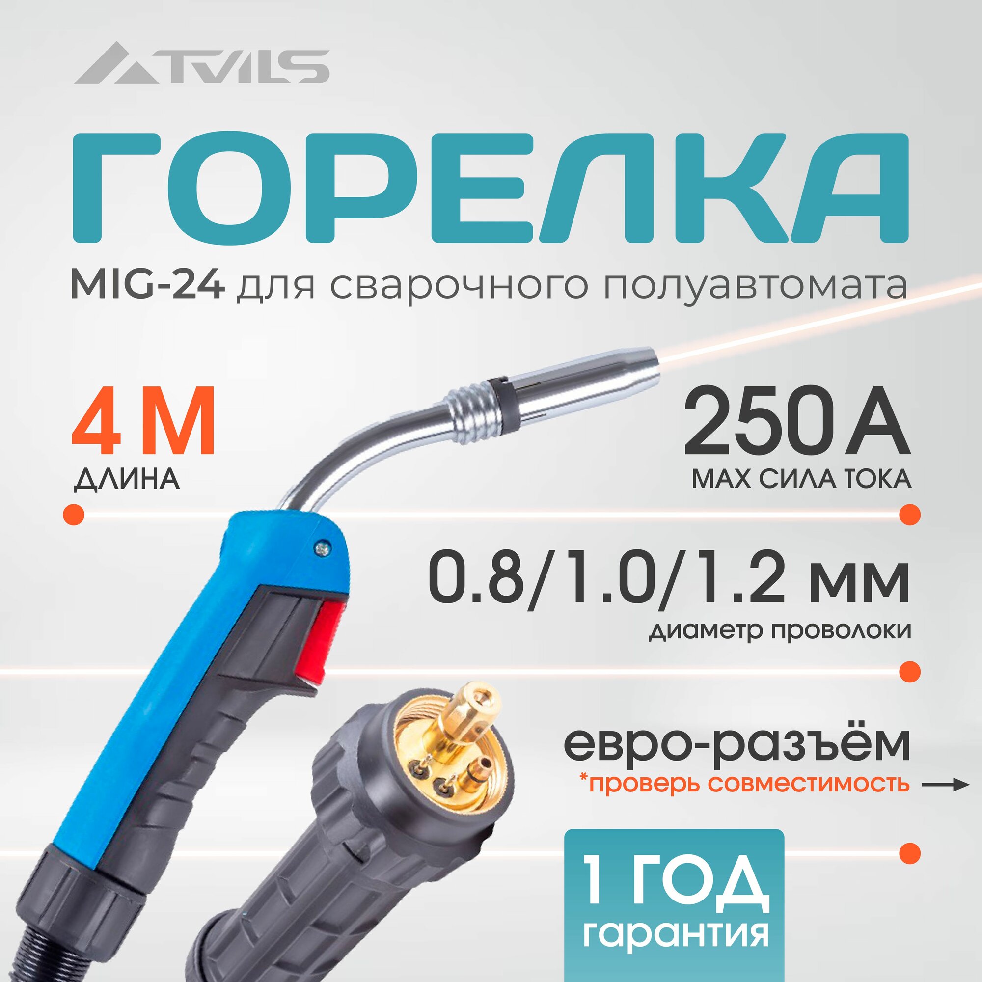 | Подробная комплектация | ГОРЕЛКА MIG-24 4М 250А держатель наконечника М6 (MIG-24) |