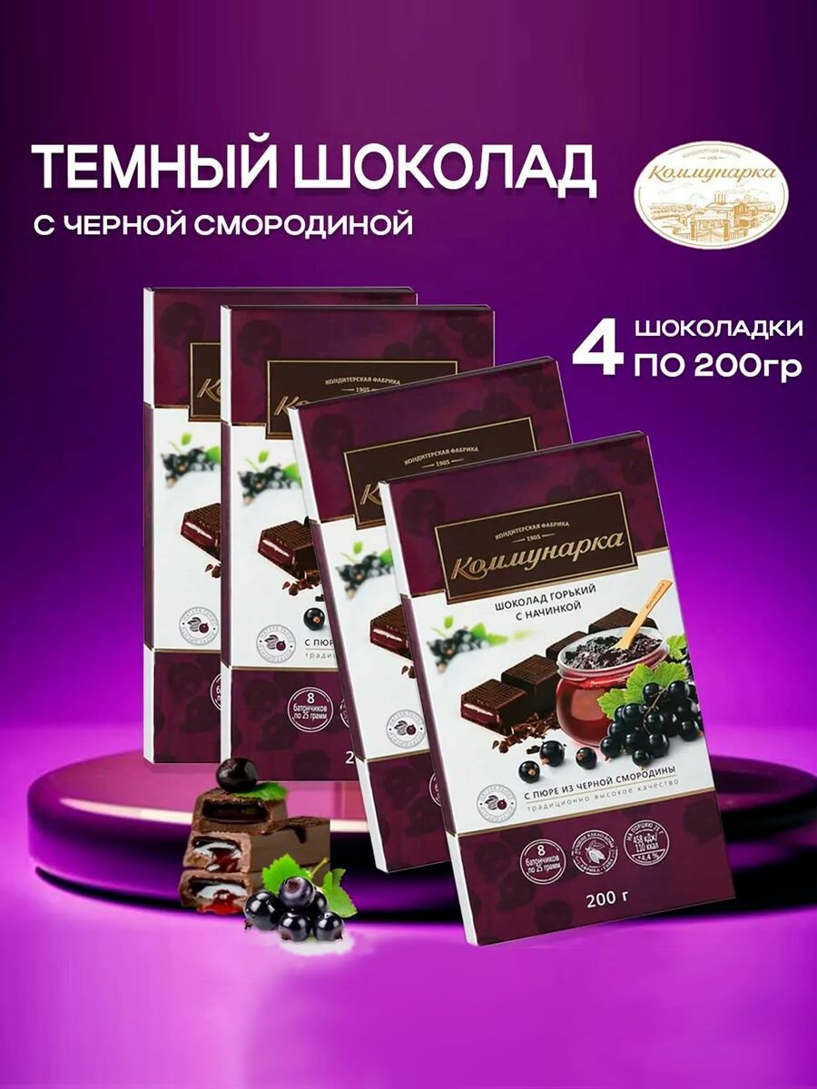 Купить Набор шоколада Коммунарка темный с начинкой черная смородина 4шт по 200гр - 800гр
