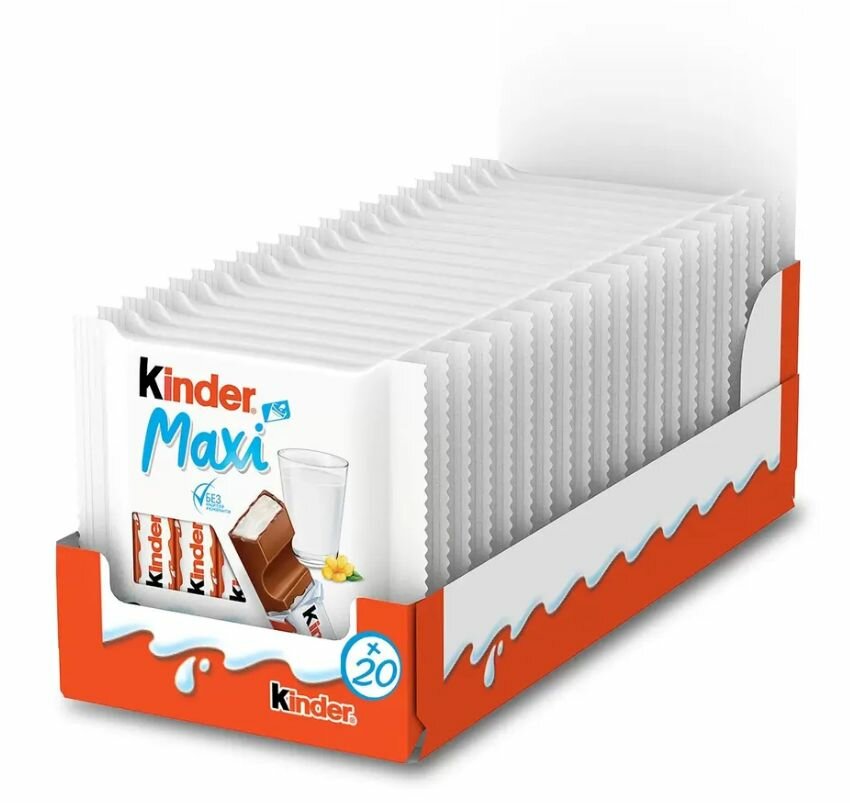 Шоколад Молочный Kinder Chocolate Maxi с молочной начинкой, 20 шт по 84 г