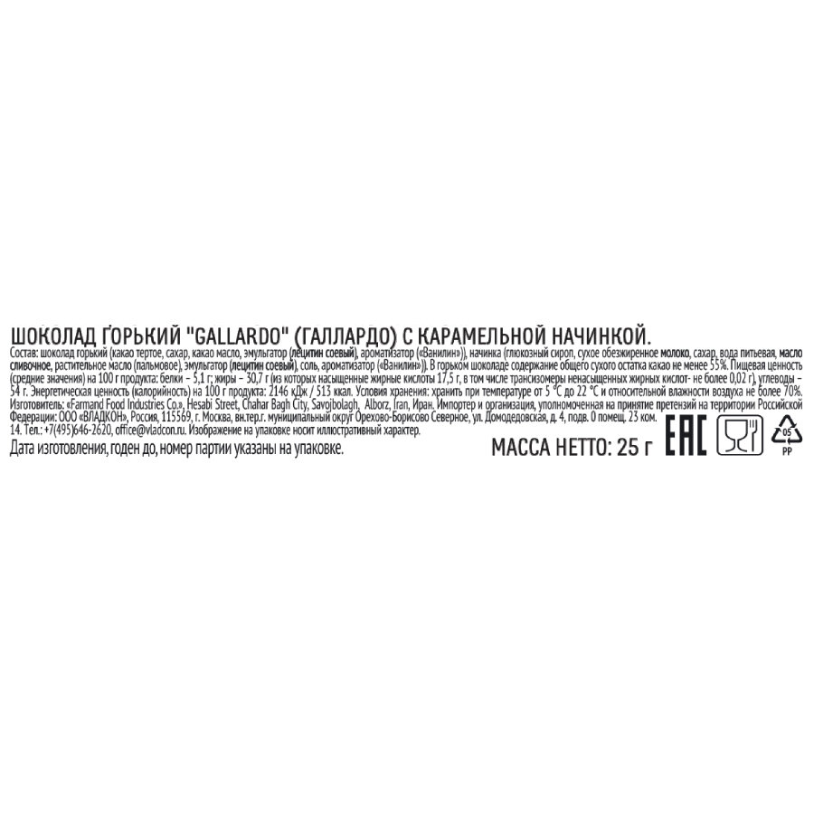 Горький шоколад с карамелью Gallardo 25 гр х 24шт