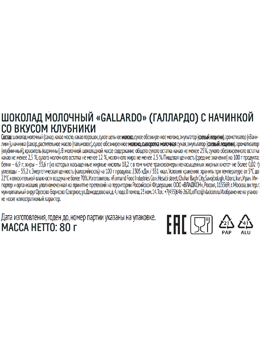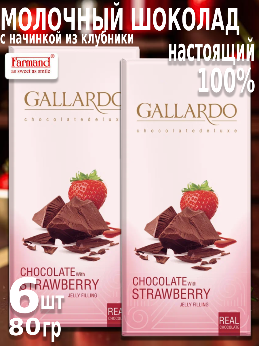 Купить Набор шоколада Gallardo молочный с клубникой 6шт по 80гр - 480гр