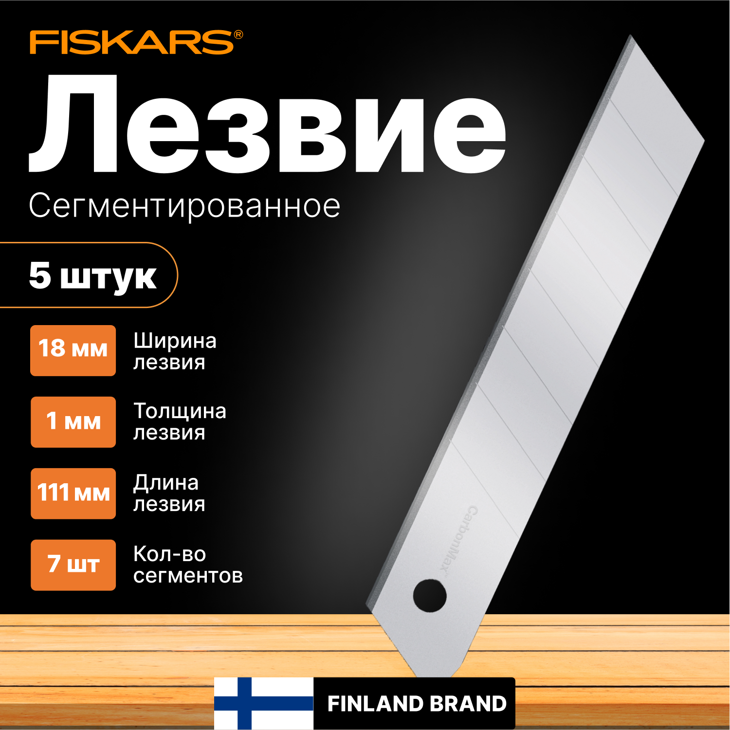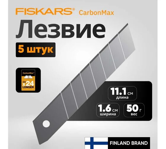 | Подробная комплектация | Лезвие сегментированное 18 мм FISKARS CarbonMax 5 штук (1027232) |