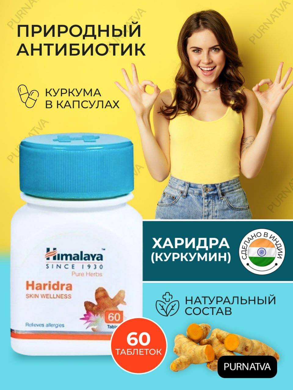 Haridra/Харидра, природный антибиотик, очищение крови и организма, 60 шт.