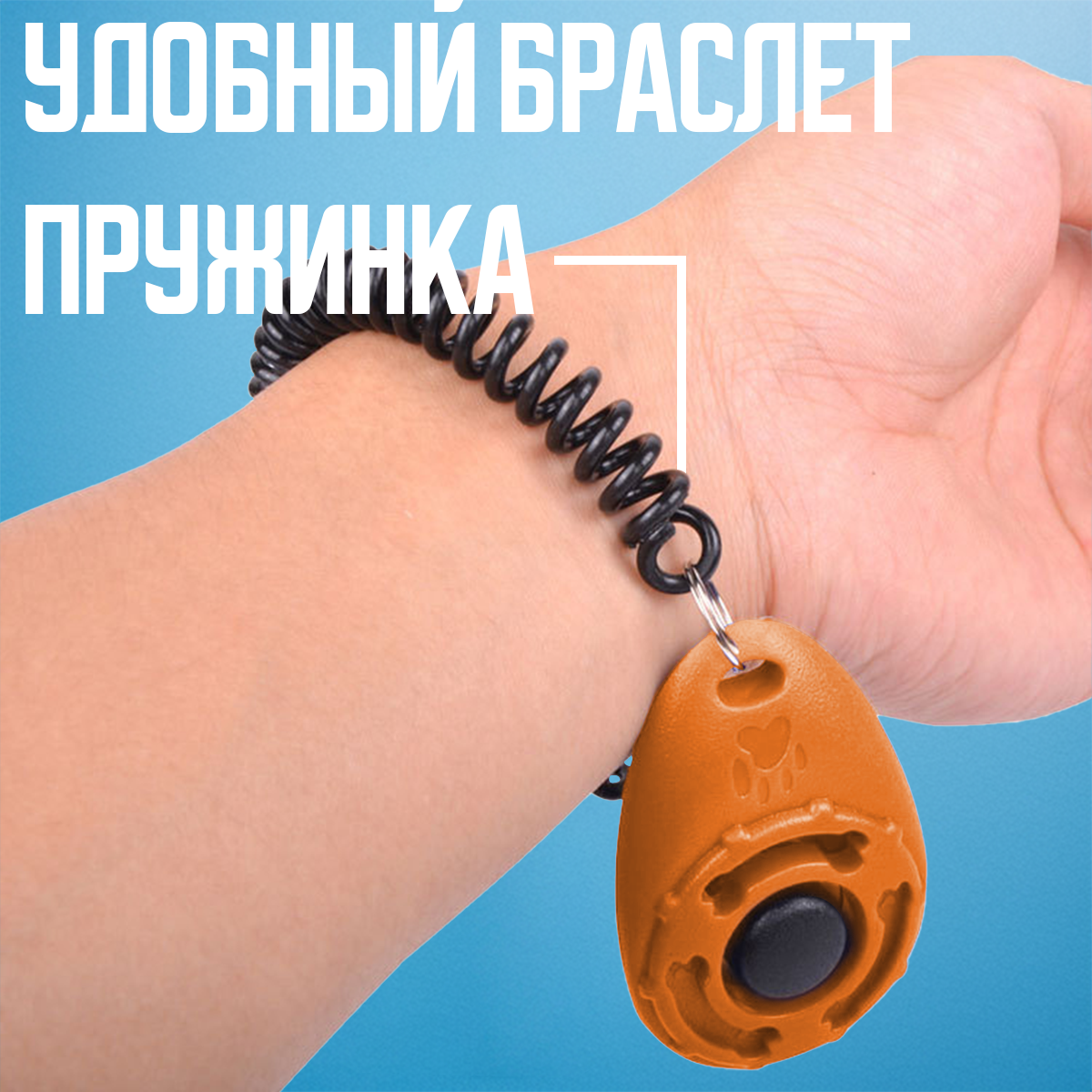 Кликер для дрессировки собак на браслете с карабином, цвет оранжевый интересное: