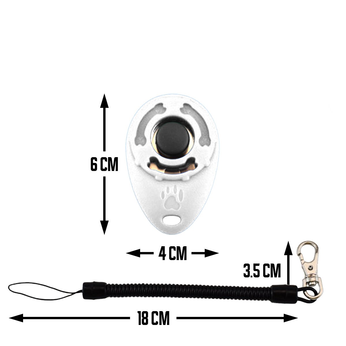 Кликер для дрессировки собак на браслете с карабином белый