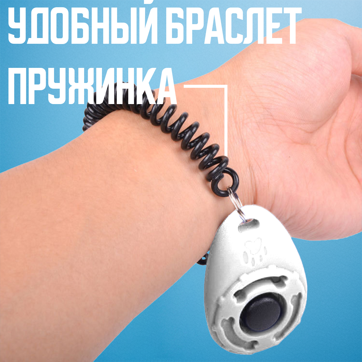 Кликер для дрессировки собак на браслете с карабином, цвет белый интересное: