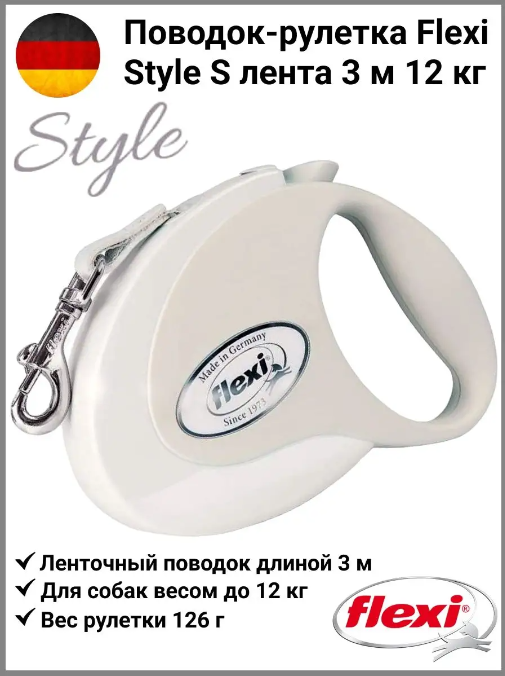 Купить Поводок-рулетка Style tape S 3m 12 kg white