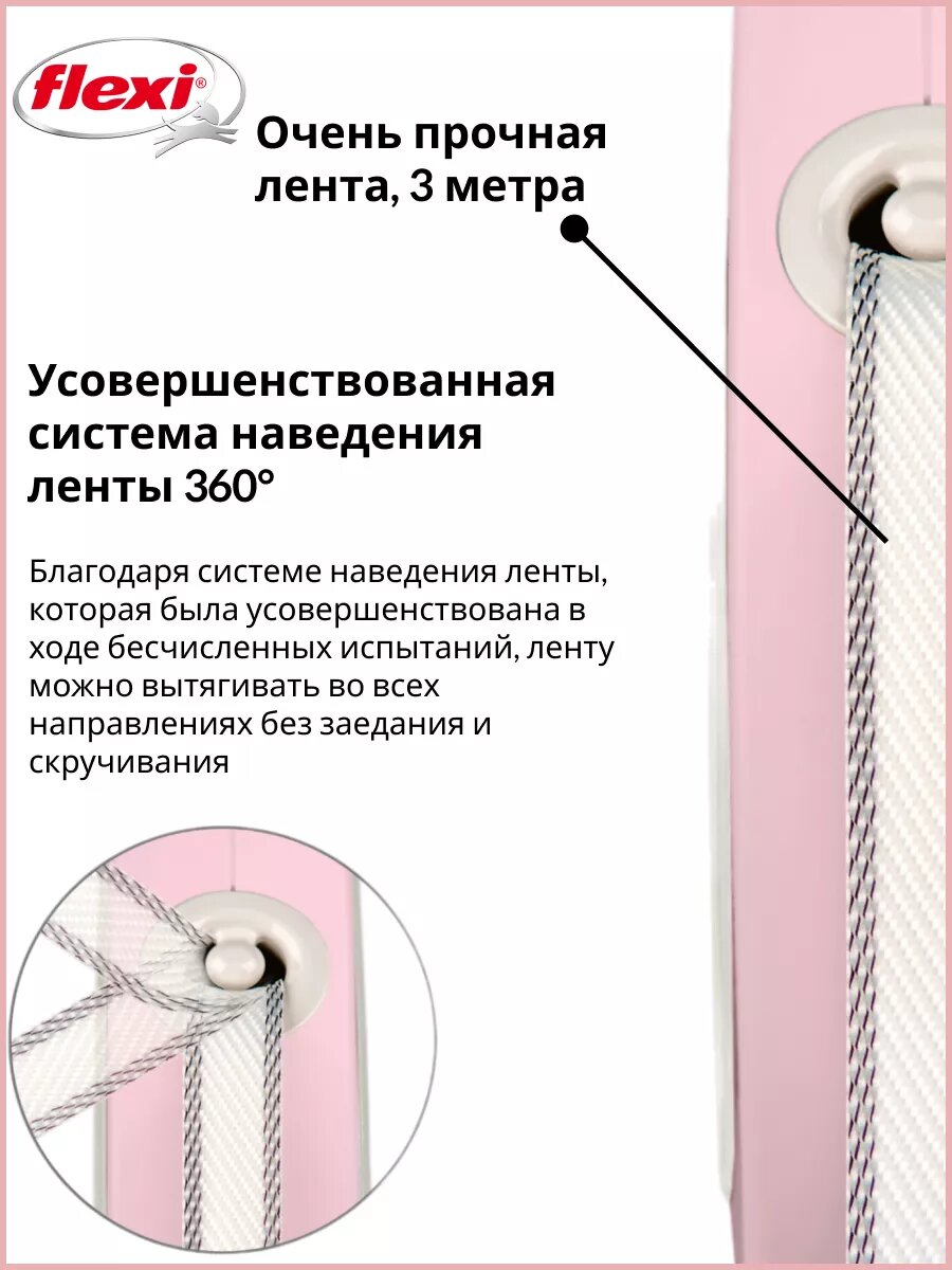 Поводок-рулетка для собак Flexi Style S ленточный розовый 3 м, до 12 кг
