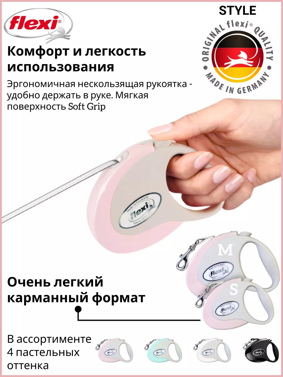 Поводок-рулетка Flexi Style tape S 3m 12 kg rose