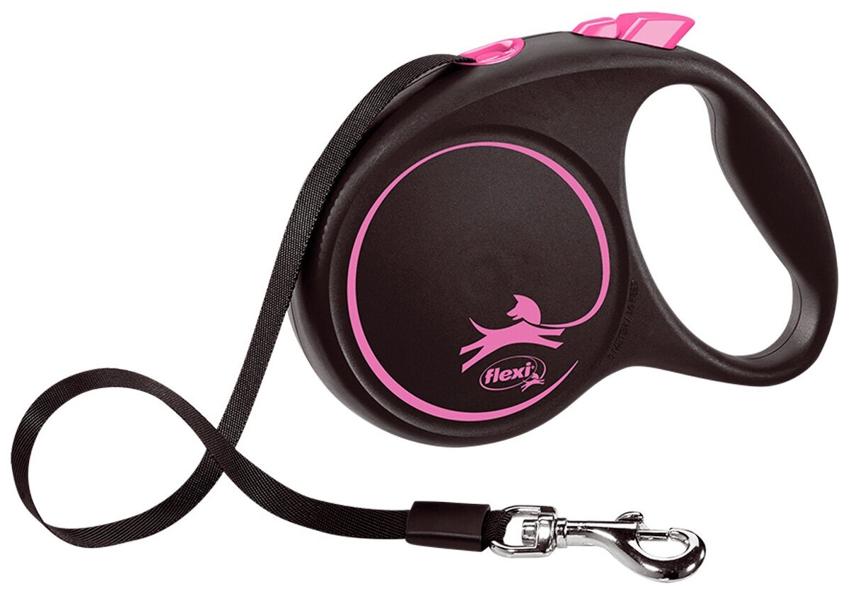 Flexi Рулетка Black Design S 5м до 15кг (ремень) черно-розовая