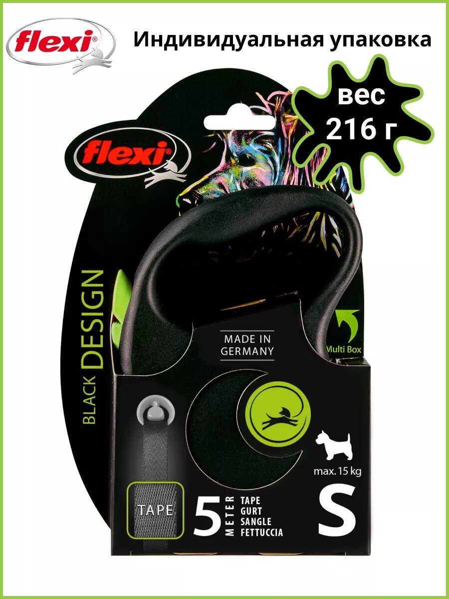 FLEXI BLACK DESIGN TAPE ременной поводок рулетка для животных 5 м размер S зеленый (1 шт)