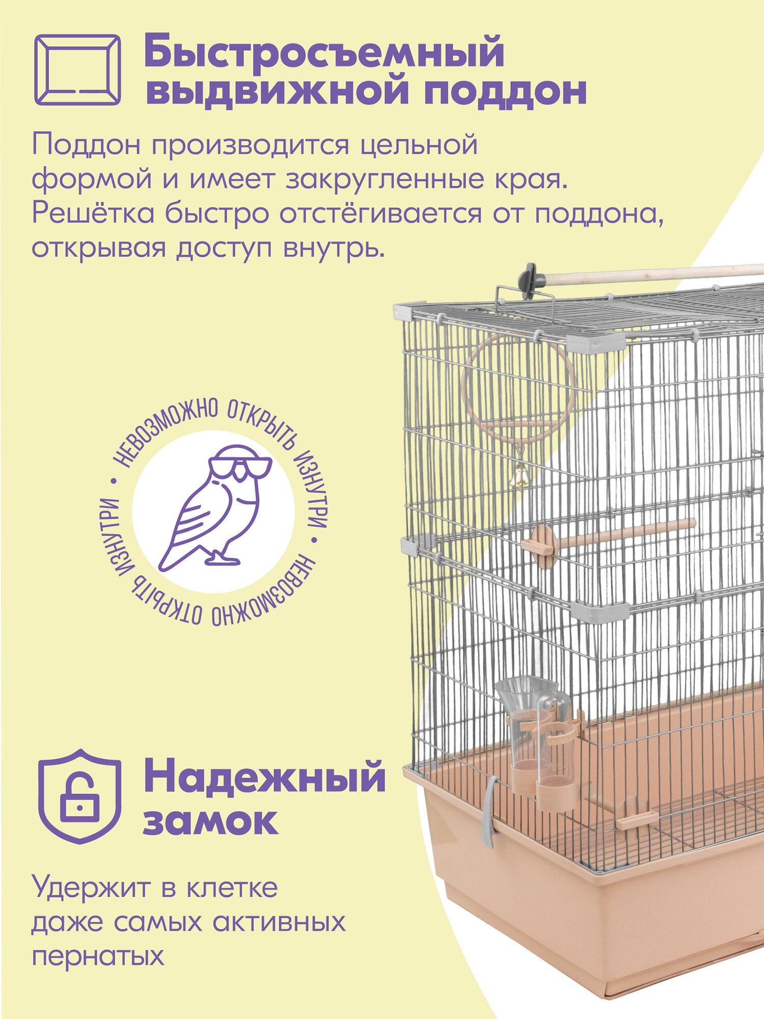 СохранитьКлетка для птиц, клетка для попугая, для канарейки ЛОФТ-2 разборная "PetTails", 2 секции, шаг прута 12мм, бежевая, 58 х 40 х 65,4см интересное: