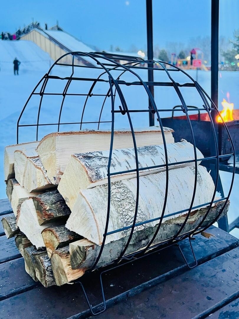 Дровница Лофт круглая металлическая, переноска с ручкой дров для бани, камина, мангала интересное: