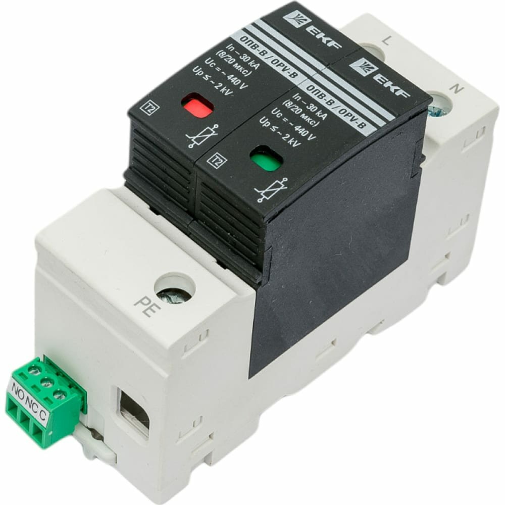 Купить УЗИП ОПВ-B/2P In 30кА 440В, Класс II (Тип 2, класс защиты B) EKF, с сигнализацией двухполюсный - ограничитель импульсных напряжений, устройство защиты от импульсных перенапряжений для квартиры и офиса