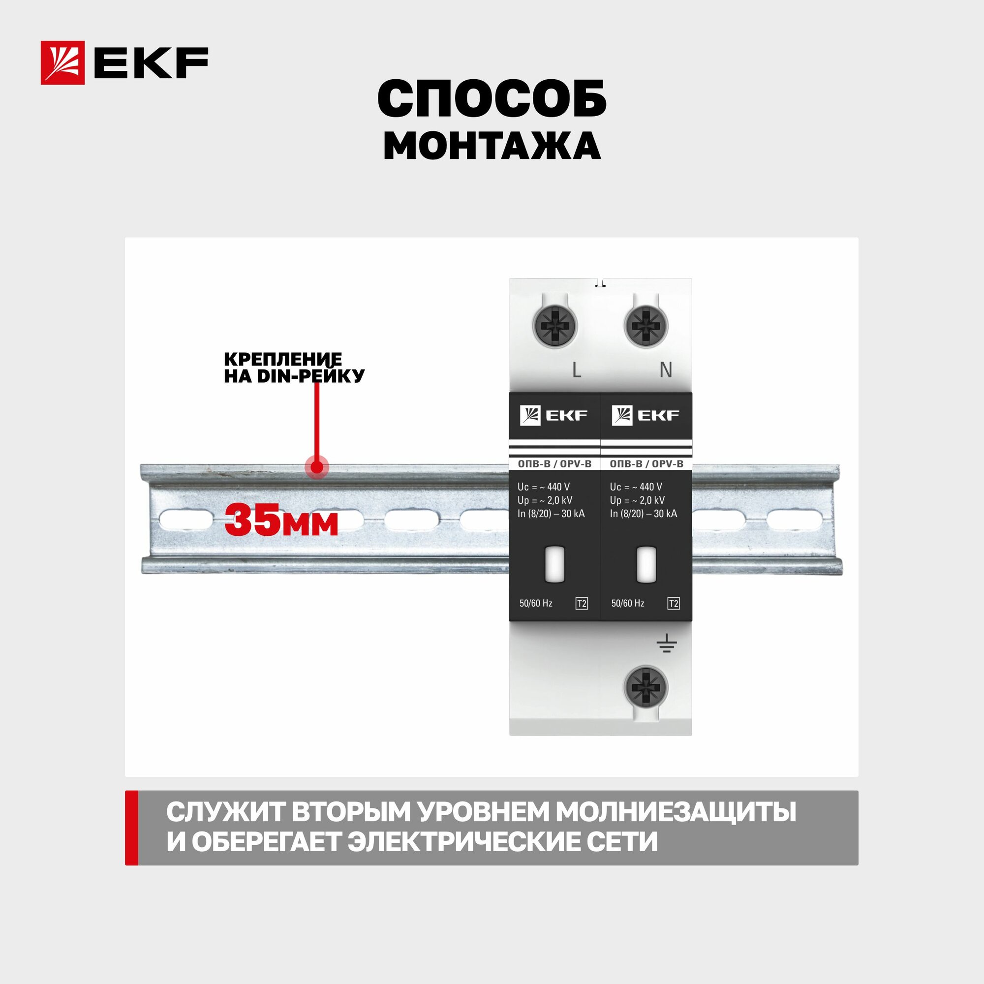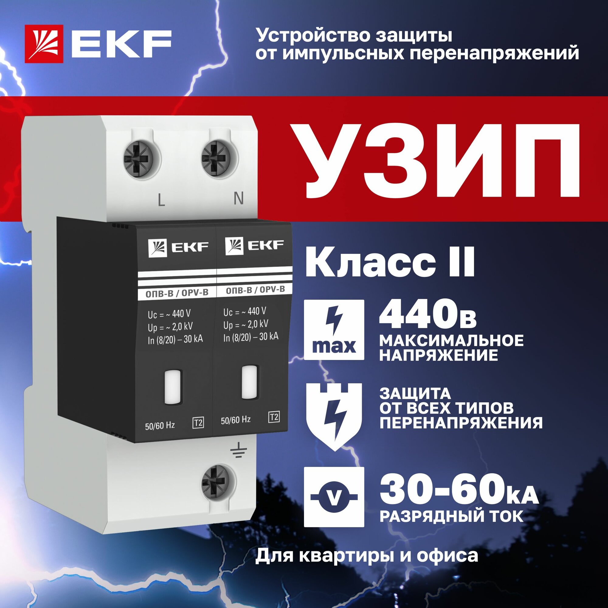 УЗИП ОПВ-B/2P In 30кА 440В, Класс II (Тип 2, класс защиты B) EKF, с сигнализацией двухполюсный - ограничитель импульсных напряжений, устройство защиты от импульсных перенапряжений для квартиры и офиса интересное: