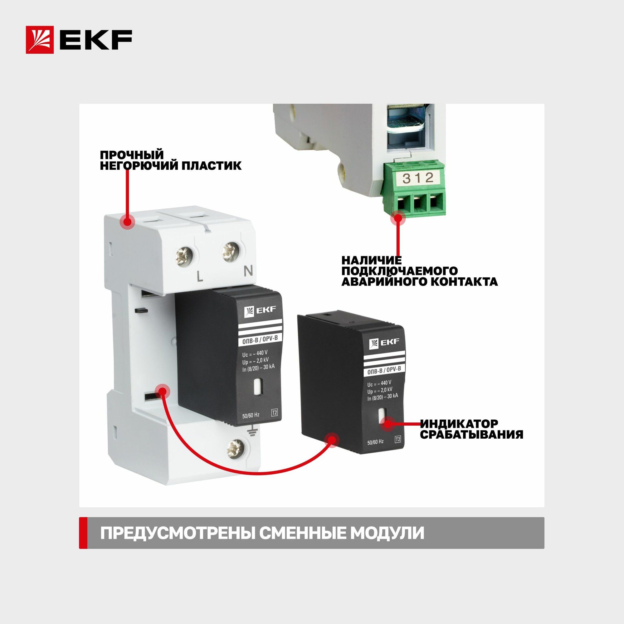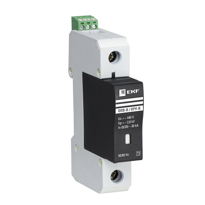 Купить УЗИП ОПВ-B/1P In 30кА 440В, Класс II (Тип 2, класс защиты B) EKF, с сигнализацией - ограничитель импульсных напряжений, устройство защиты от импульсных перенапряжений для квартиры и офиса