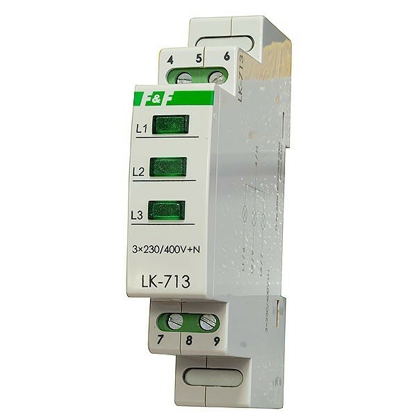 Указатель напряжения LK-713 3 зел. светодиода (сигнализация наличия 3ф 35мм 3х400/230+N IP20 монтаж на DIN-рейке) F&F EA04.007.002 (7шт.в упак.)