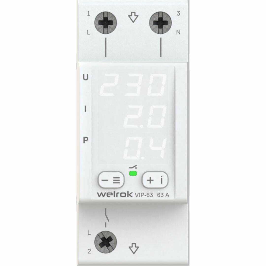 Welrok VIP-63 Многофункциональное реле с контролем напряжения, тока и мощности, 63А