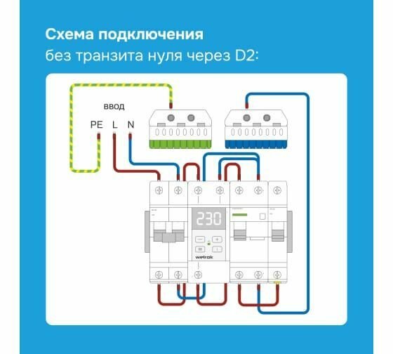 Реле напряжения с контролем тока Welrok VI-50 red, двухмодульное, красная индикация