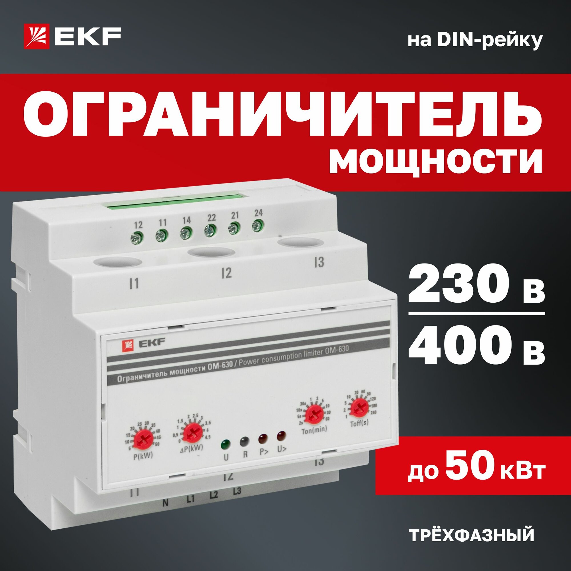 Ограничитель мощности 3-фазный ОМ-630 PROxima до 50 кВт, 380В (230/400 В) для контроля потребляемой мощности и отключения нагрузки при превышении ее свыше установленного значения интересное: