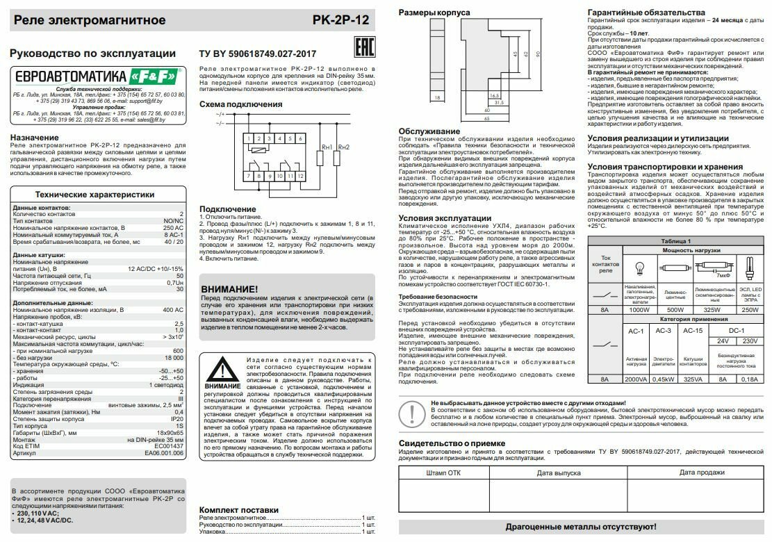 СохранитьРеле промежуточное электромагнитное PK-2P-12, Евроавтоматика F&F, 12В ACDC, 2х8А, EA06.001.006 интересное: