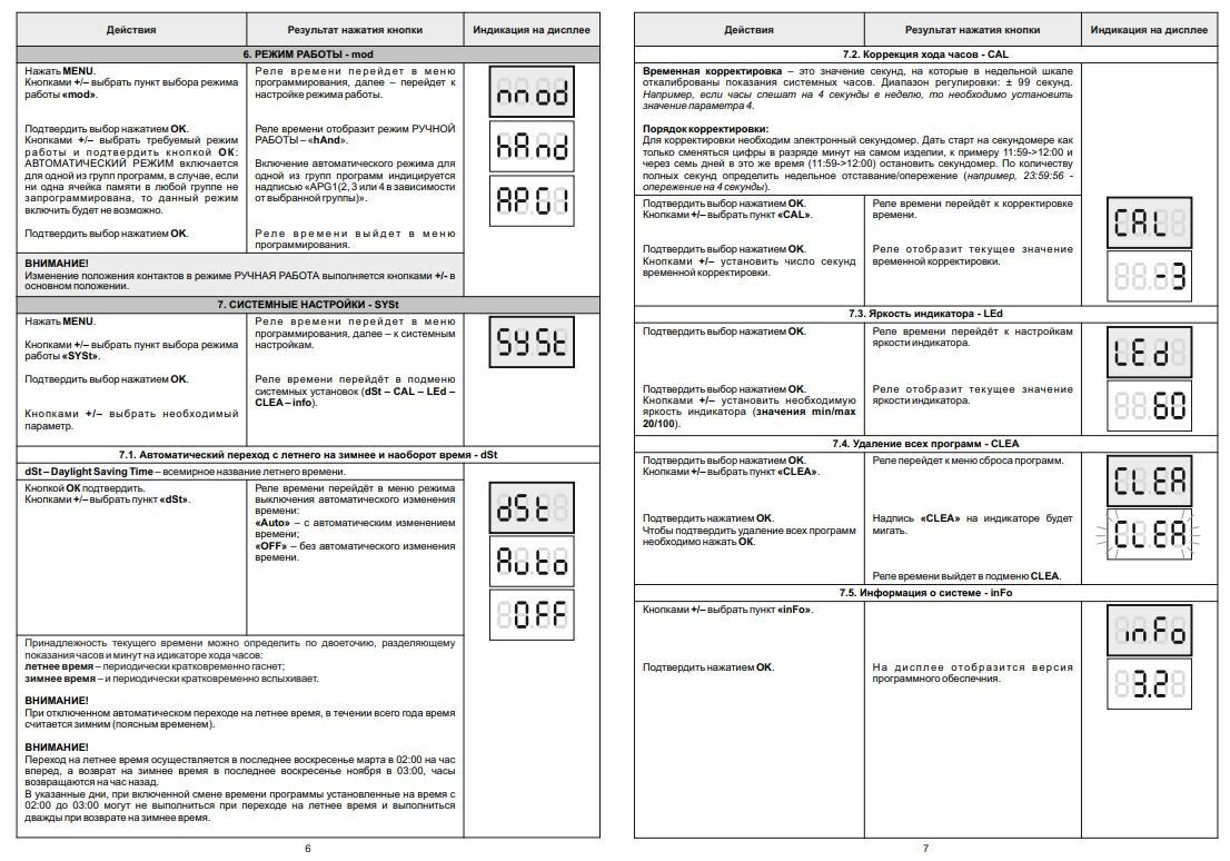 | Дополнительная информация | индикация текущего времени, дня недели и режима работы |