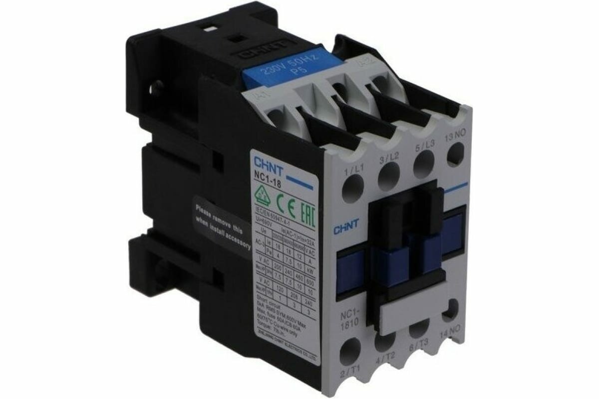 Контактор CHINT трехполюсный NC1-1810 18А АС3 1НО 221545 интересное: