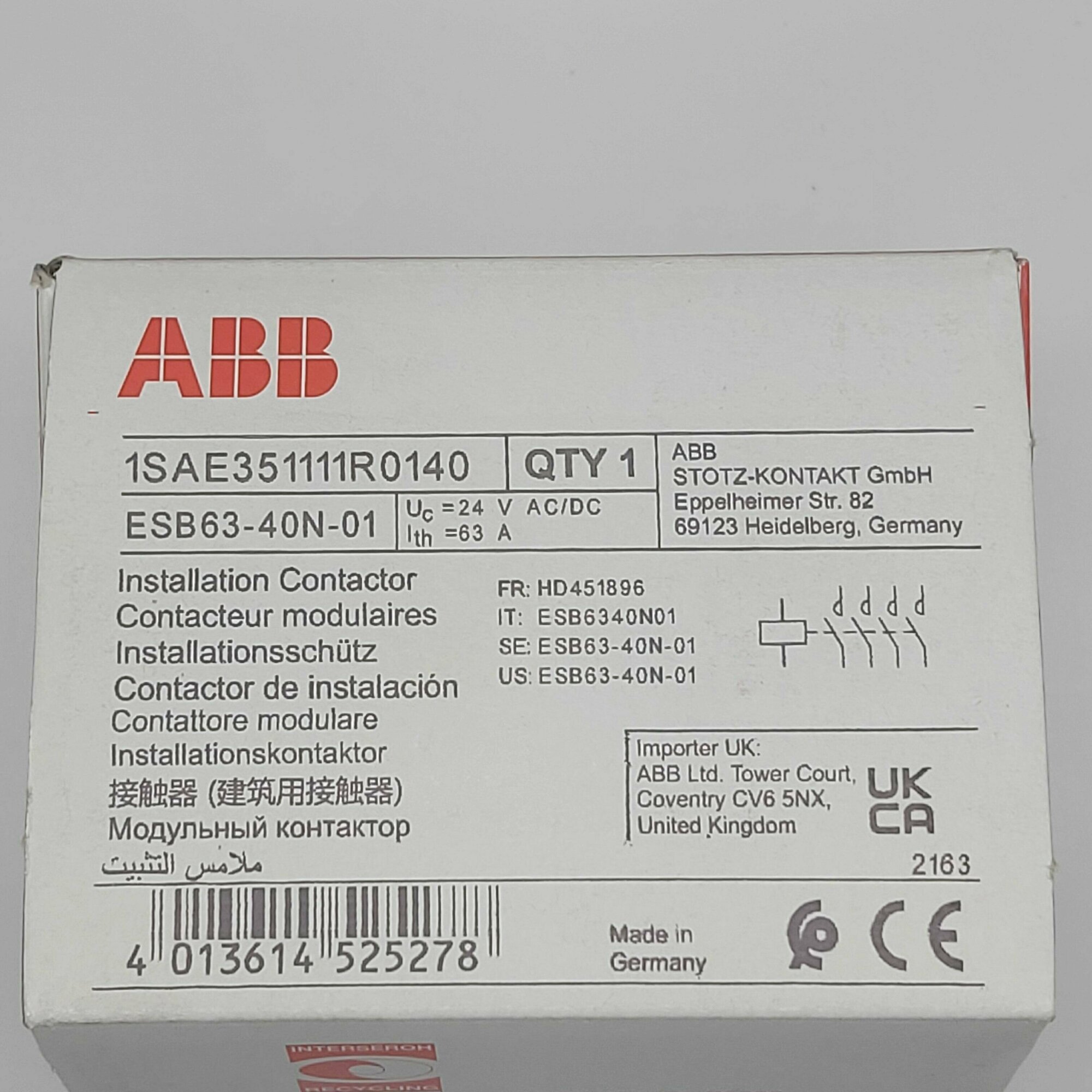 Контактор ABB ESB63-40N-01 (63А АС-1, 4НО) 24В 1SAE351111R0140
