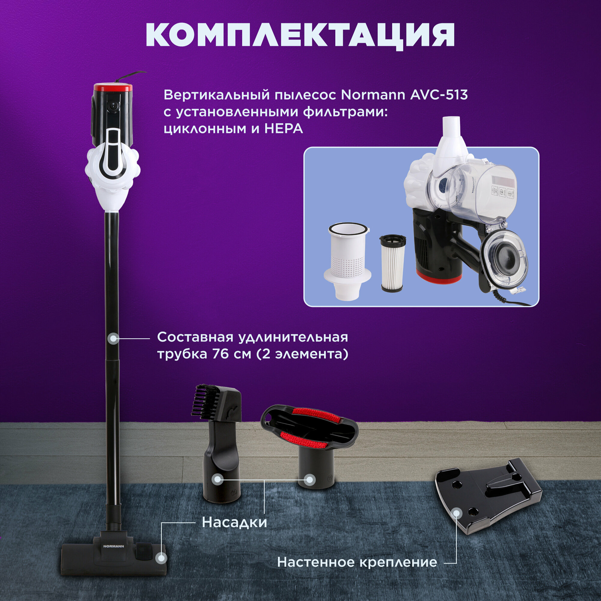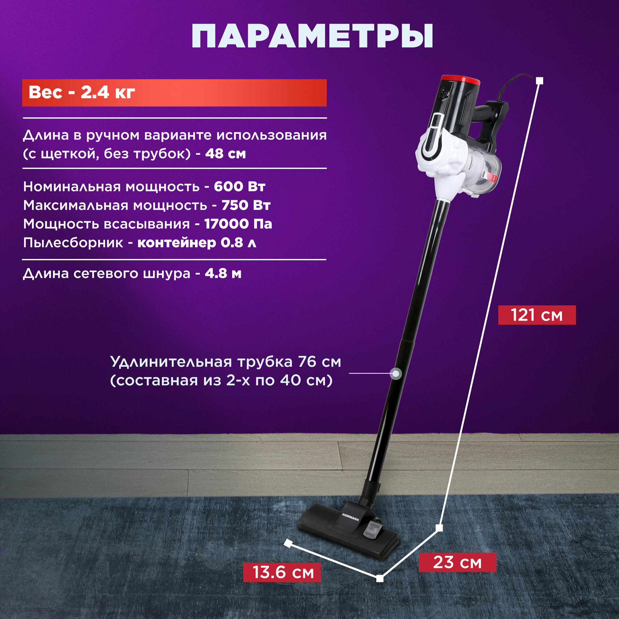 Купить Пылесос вертикальный проводной NORMAN AVC-513, 750 Вт с HEPA-фильтром