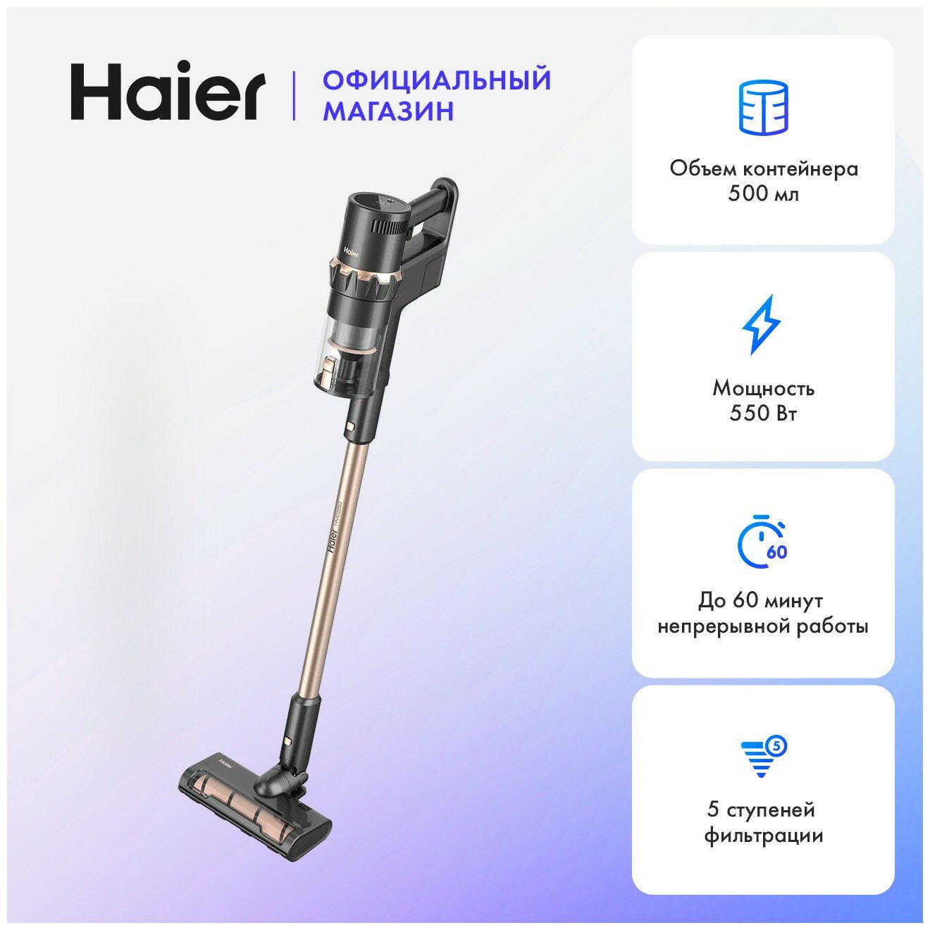 Пылесос вертикальный Haier HVC550 интересное: